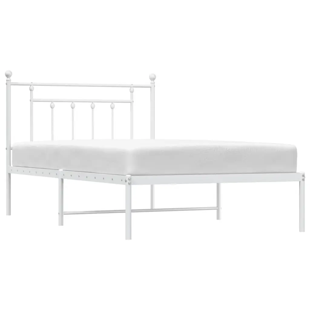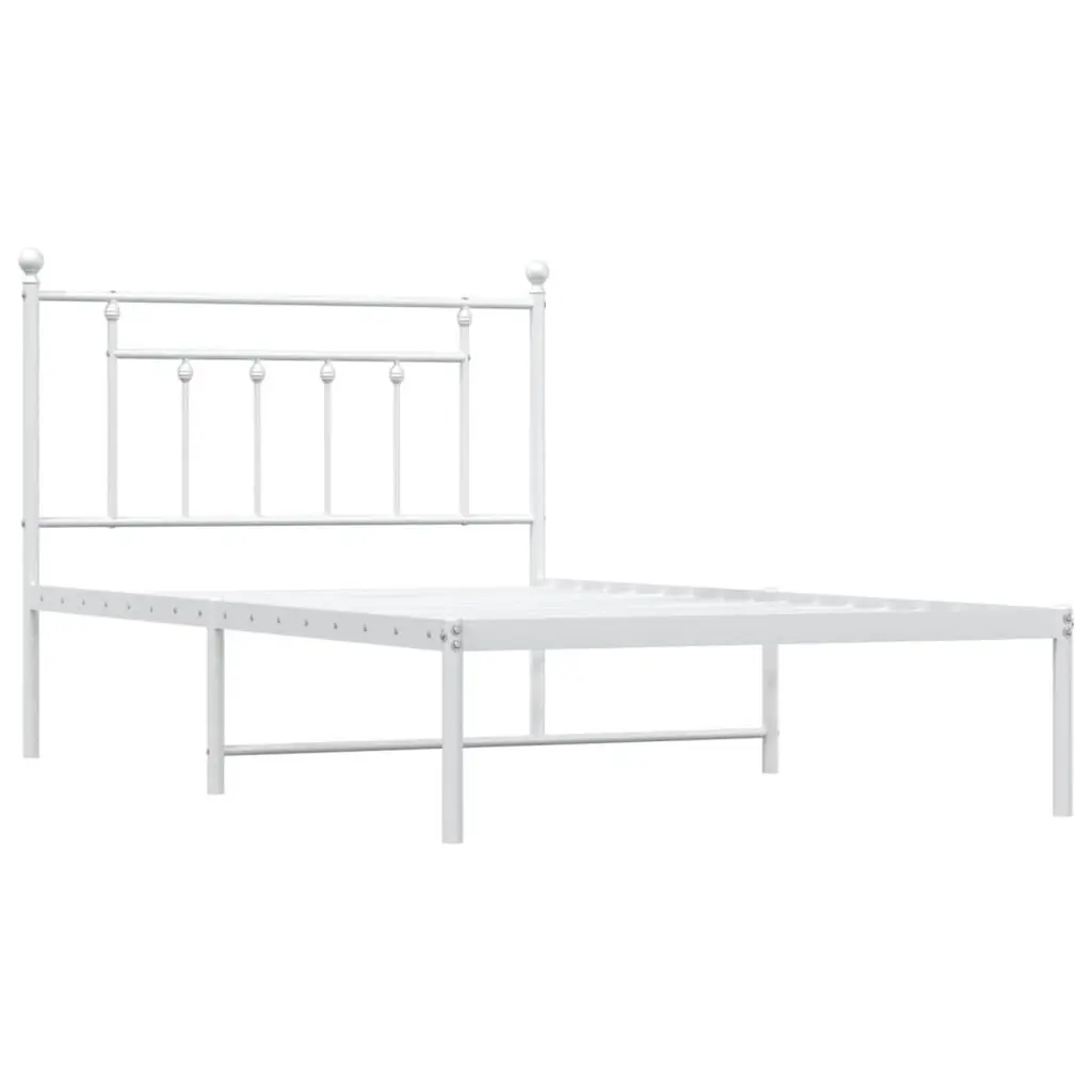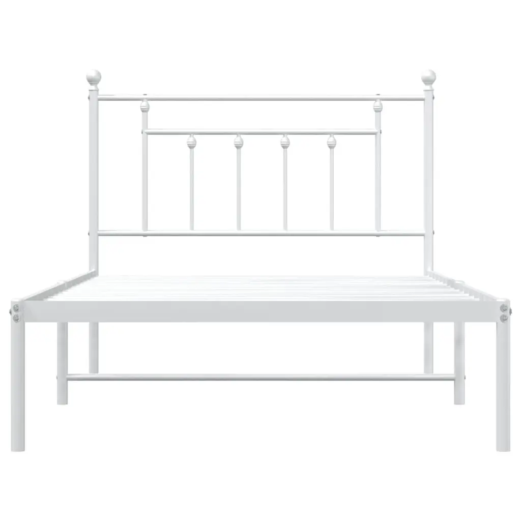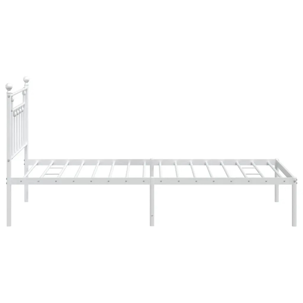 Vidaxl Bed Frame White Powder-Coated Steel Twin Bed Frame Rectangular