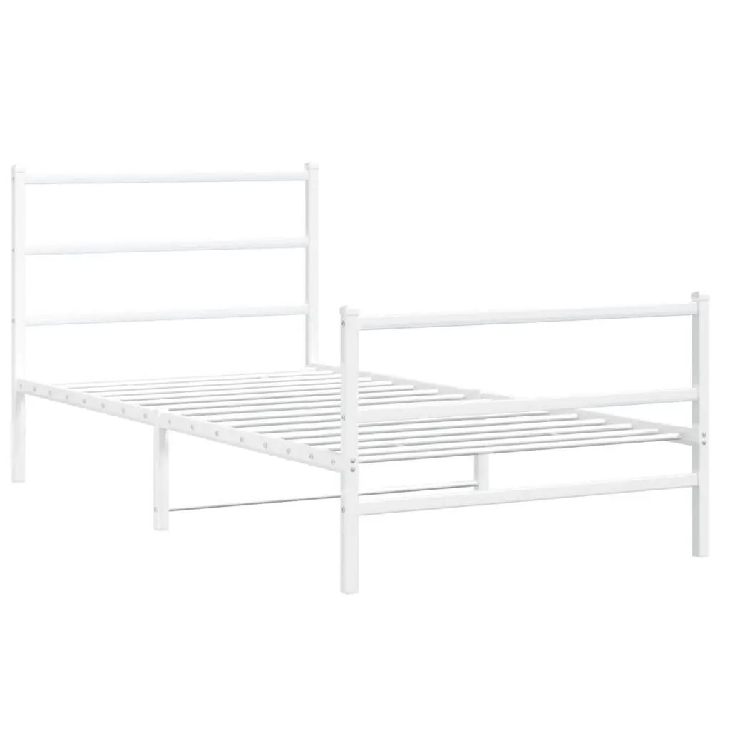 Vidaxl Bed Frame White Powder-Coated Steel Twin Bed Frame Rectangular