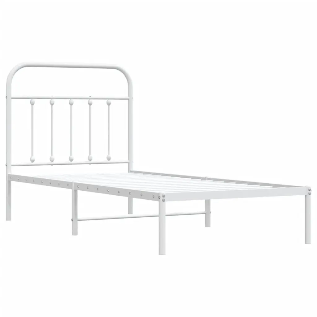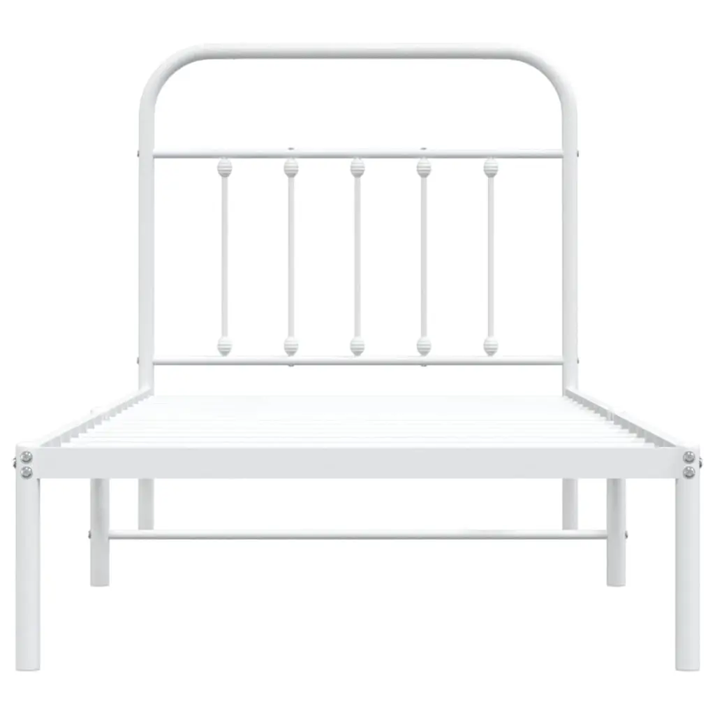 Vidaxl Bed Frame White Powder-Coated Steel Twin Durable Bed Frame