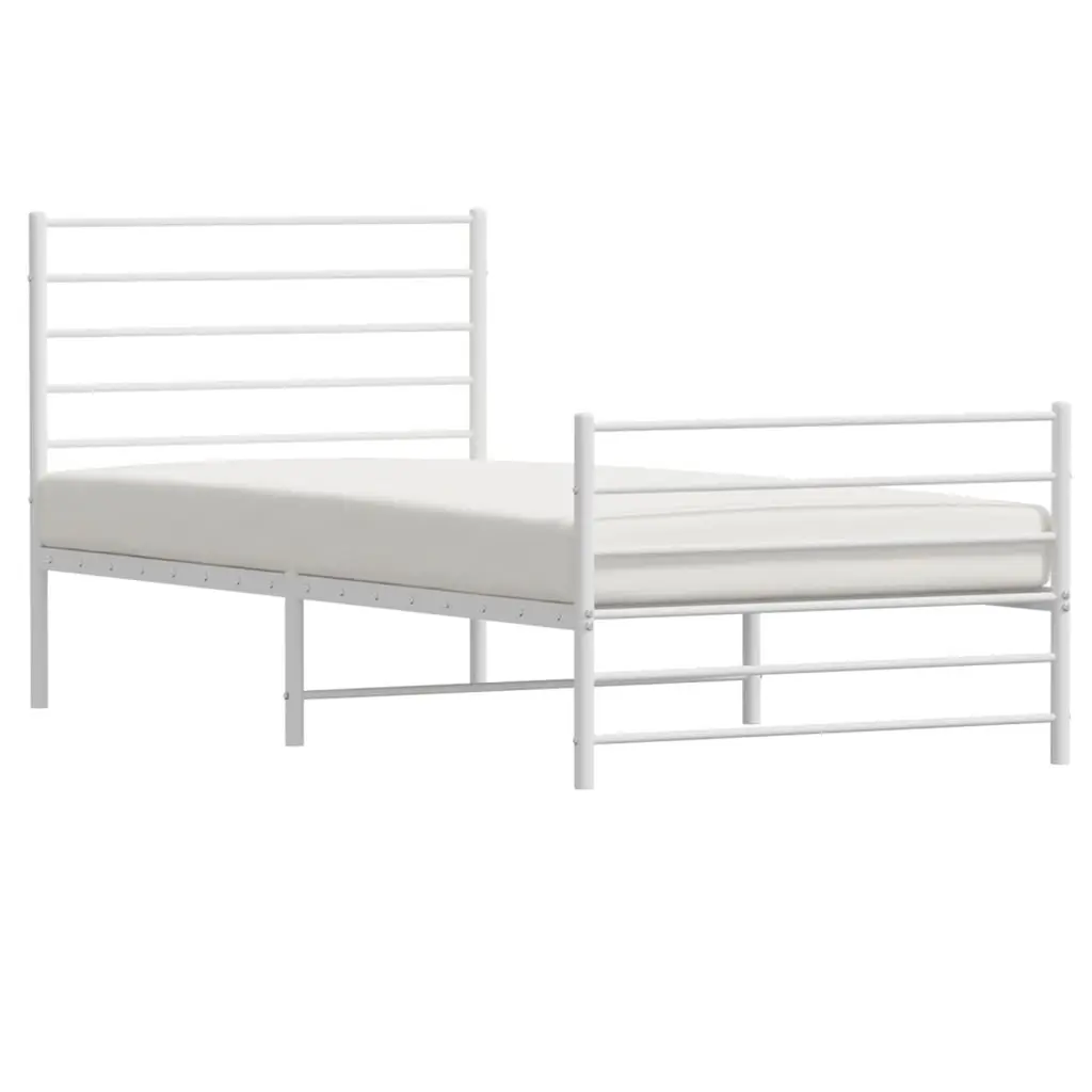 This metal bed frame blends classic design with modern practicality, making it a standout addition to any bedroom. With its sleek white finish, this single bed frame not only looks smart but also delivers solid support for a comfy night's sleep. Sturdy Metal Frame: Built with strong metal parts for solid support, so you can snooze worry-free.Timeless Design: The classic style with a smooth finish goes well with various decors, making it a versatile pick for your home.Lightweight and Strong: Made for one sleeper, this frame holds up to 330.7 lbs, making it great for guest rooms or kids' bedrooms.Easy Assembly: Comes with clear instructions, allowing two people to set it up in no time with minimal tools.Perfect Size: With 35.4 x 74.8 in measurements, this frame works well in smaller areas, helping you make the most of your bedroom.
