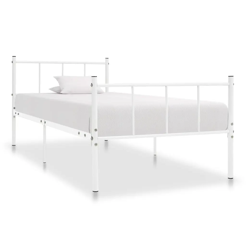 Vidaxl Bed Frame White Steel 47.2 X 78.7 In Bed Frame Rectangular