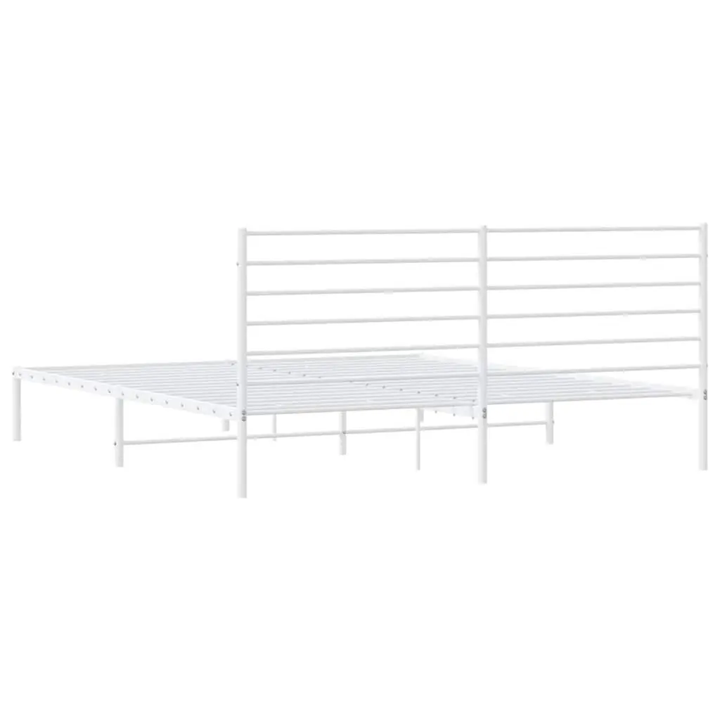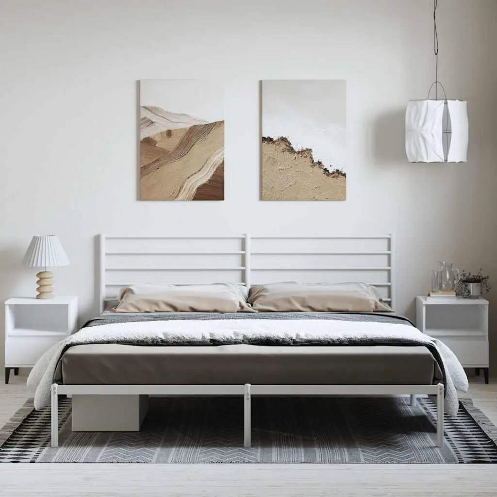 This metal bed frame, with its sleek headboard and beautiful white finish, is a fantastic centerpiece for your bedroom. Made from tough steel, it brings strength and style to create a cozy vibe for relaxed nights and restful sleep. Stylish Headboard: The headboard really stands out and fits various interior styles with its sleek lines.Sturdy Construction: Built with robust metal slats, this bed frame is made to last and provides excellent support for your mattress, creating the perfect sleep haven.Easy Setup: Assembly is a breeze, so you can have your bed ready in no time. Perfect for busy lives where you want quality without the hassle.Versatile Use: An excellent choice for guest rooms, bedrooms, or anywhere you need a stylish yet practical sleeping solution.Compact Design: Its size fits neatly in smaller spaces, allowing you to maximize your area while still being comfy for two.