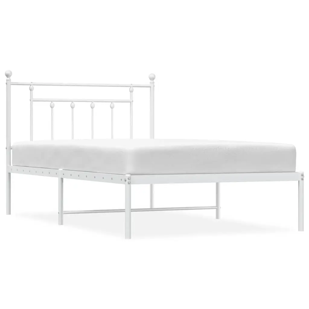 This metal bed frame is crafted to boost your bedroom's looks with its sleek and modern white finish, giving off great vibes for all kinds of interior styles. Perfect for adults looking for a tough sleeping solution, this frame not only supports a comfy mattress but also brings a touch of class to your space, making it a real showstopper in your room. Elegant Aesthetic: The white powder-coated finish adds a touch of class and matches various decor styles, making it a great fit for any modern bedroom.Sturdy Structure: Built from tough steel, it’s designed to last and can support up to 220.5 lbs of weight, making it perfect for everyday use.Comfort Focused: Fits standard mattress sizes, providing a comfy base for a restful night's sleep.Space Efficiency: The compact design is just right for smaller bedrooms or guest rooms, helping you make the most of your space without sacrificing comfort.Easy Maintenance: The smooth surface makes cleaning a breeze, keeping your bed frame looking fresh with just a quick wipe down.