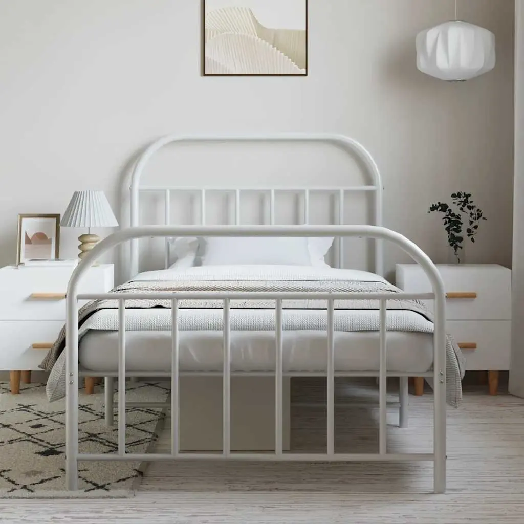 Vidaxl Bed Frame White Steel Twin Bed Frame Rectangular Durable