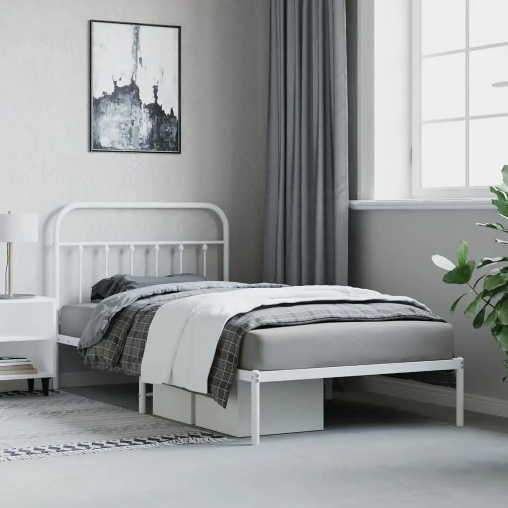 Vidaxl Bed Frame White Steel Twin Bed Frame Rectangular Industrial