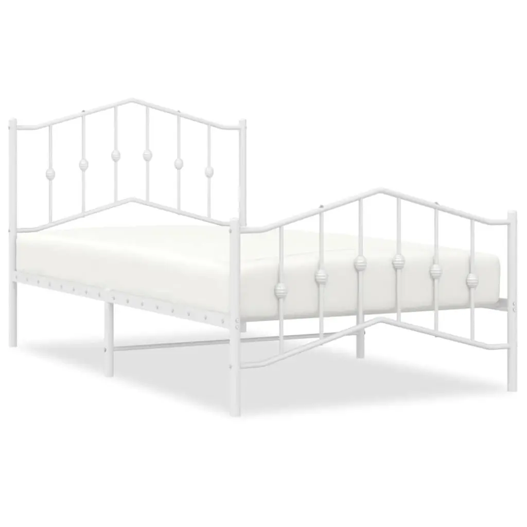 Vidaxl Bed Frame White Steel Twin Bed Frame Rectangular Modern