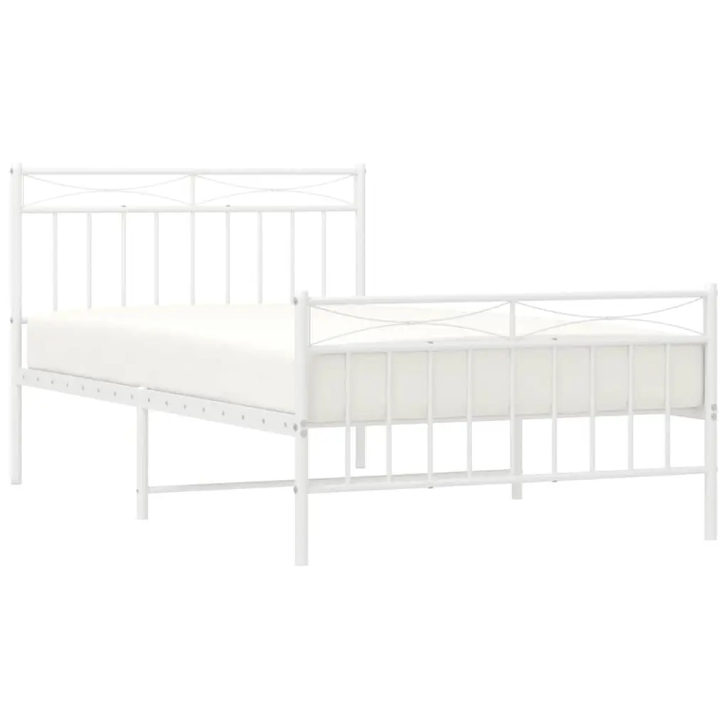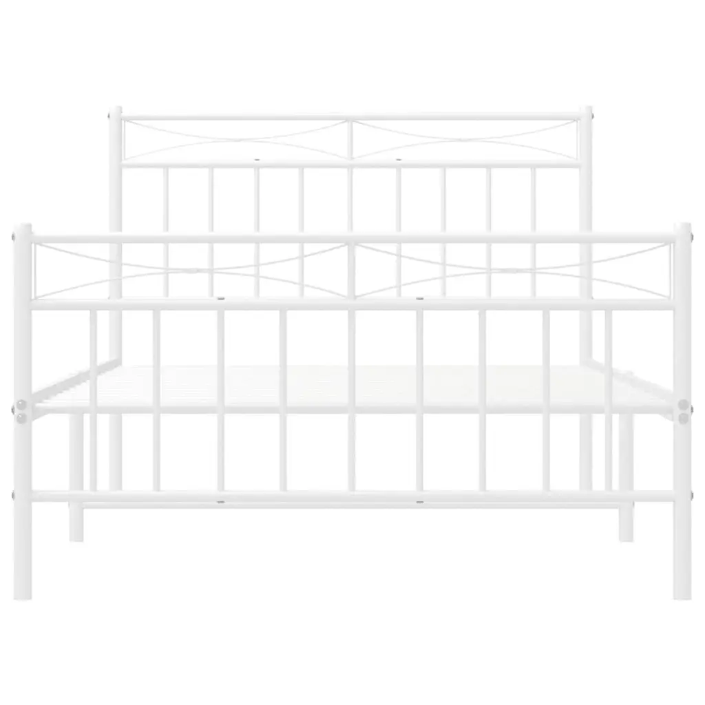 Vidaxl Bed Frame White Steel Twin Bed Frame Rectangular Modern