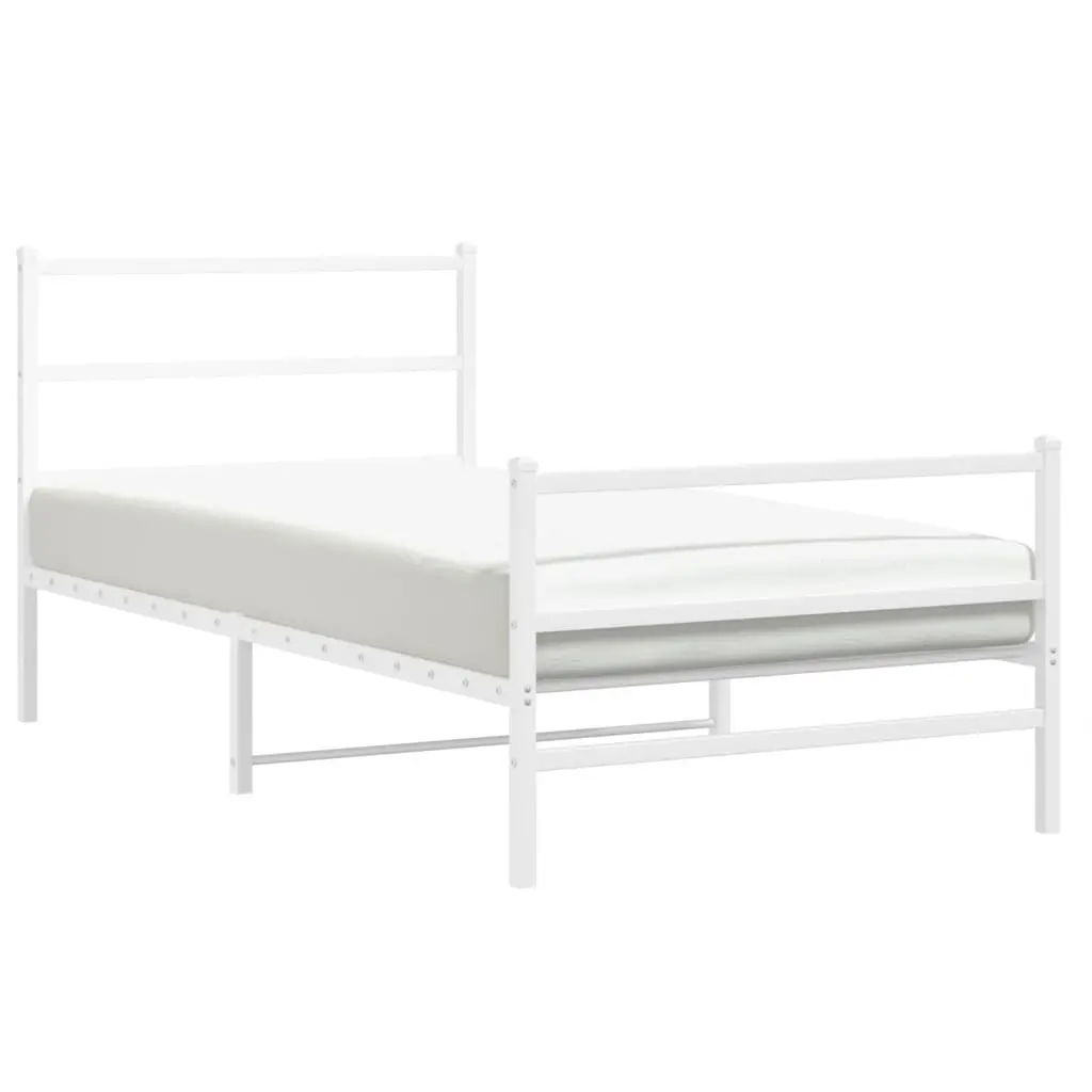 Vidaxl Bed Frame White Steel Twin Bed Frame Rectangular Modern