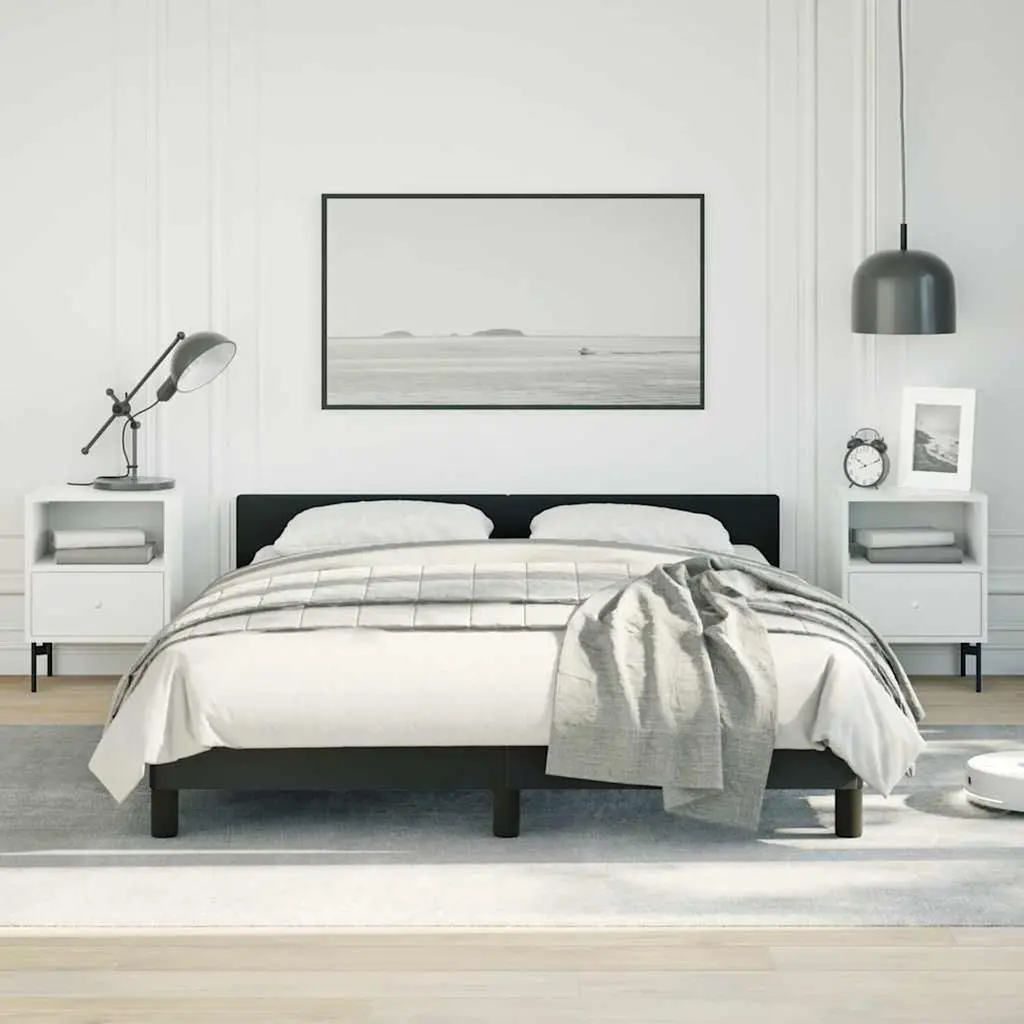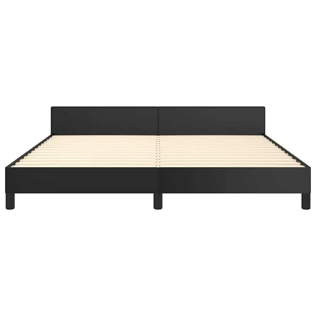 Vidaxl Bed Frame With Headboard Black Faux Leather, Plywood, Engineered Wood