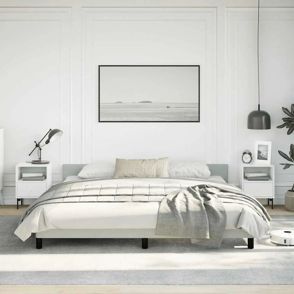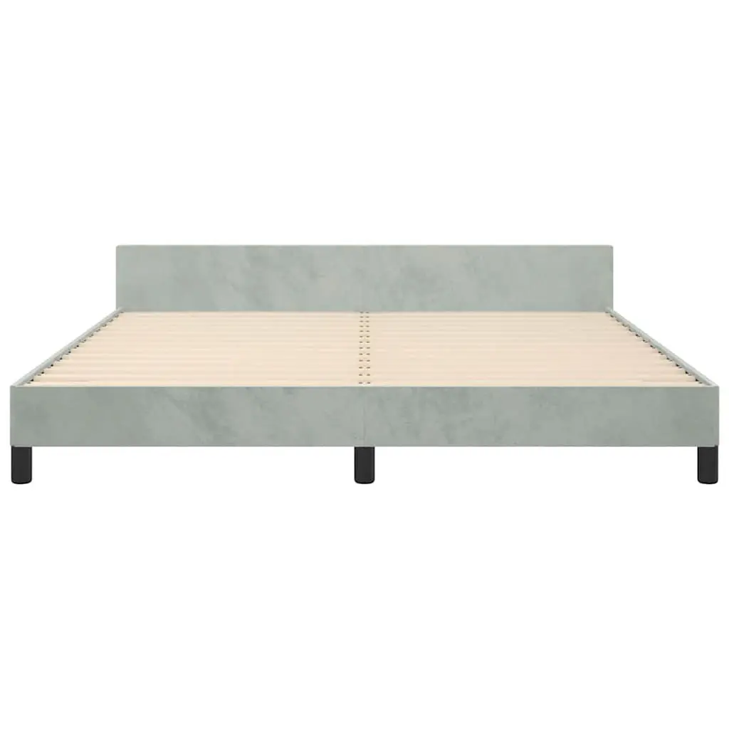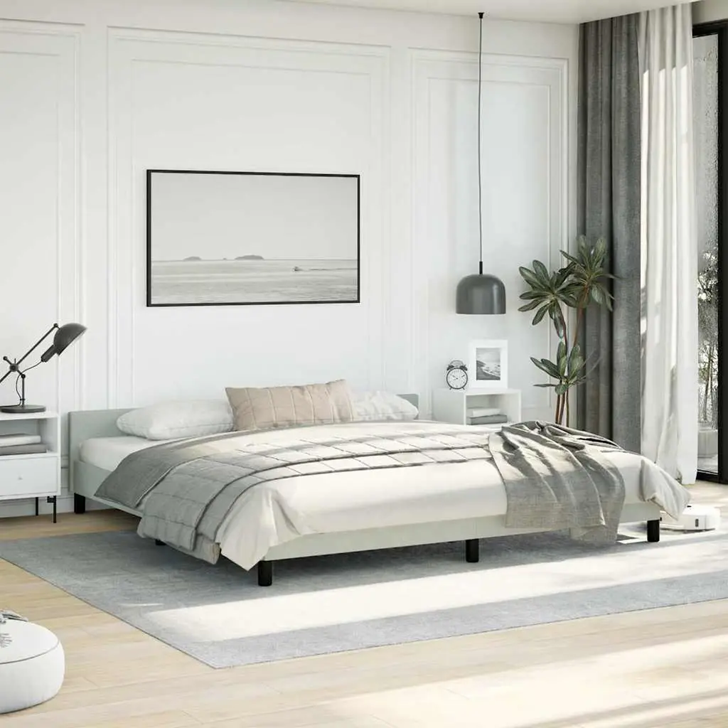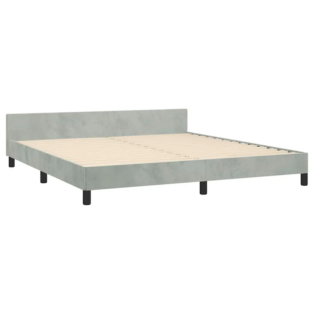 This king-size bed frame hits the sweet spot between coziness and style, making it an ace highlight for any modern bedroom. Decked out in soft velvet fabric, it promises a comfy night's sleep while adding a classy vibe to your space with its chic light grey color and sleek shape. Soft Velvet Fabric: Upholstered in premium velvet that’s gentle on the skin, adding a splash of luxury. Its smooth texture gives a comfy sleeping area, making it spot-on for relaxing.Stylish Modern Design: This frame has a minimalist look with clean lines and subtle curves, fitting in nicely with any bedroom style. The light grey shade goes well with a range of themes, keeping your space lookin' chic and inviting.Robust Construction: Built from solid engineered wood, it can hold a double bed, giving you the perfect support for dreamy nights. It’s made to last, so it’s up to daily wear and tear.Spacious Dimensions: With roomy specs of 78.3 in wide and 82.7 in long, it's designed for king mattresses, providing great space for adult sleepers. Plus, the 9.8 in height makes it easy for getting in and out.Easy Maintenance: The velvet fabric is a breeze to clean. Just a bit of dusting and the occasional quick wipe with a damp cloth keeps it looking fresh, no harsh chemicals needed.