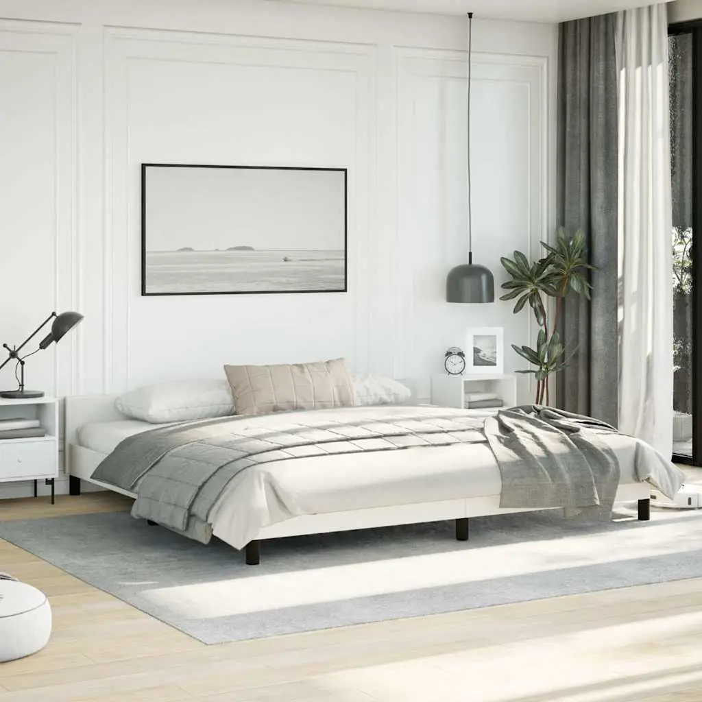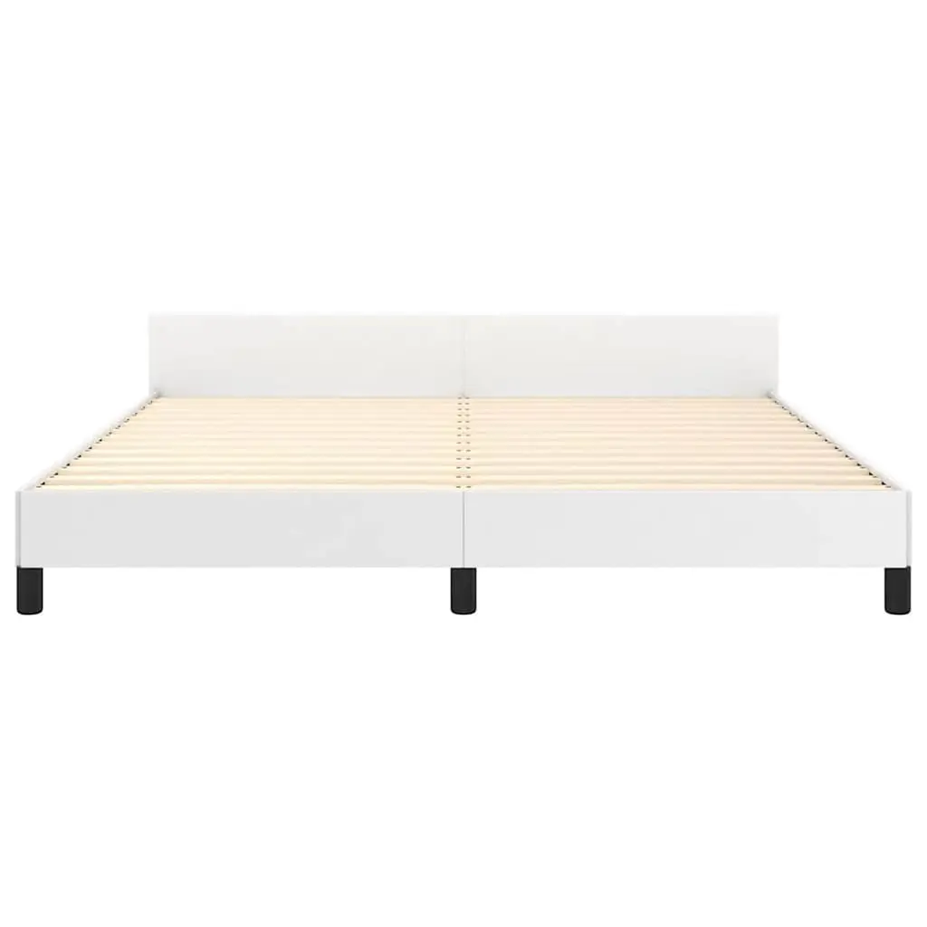 Vidaxl Bed Frame With Headboard White Faux Leather, Plywood, Engineered Wood