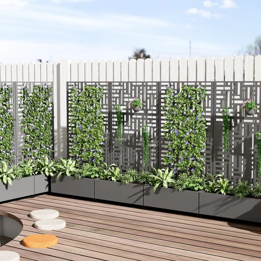 This Gabion Raised Bed Planter is a smart way to show off your plants while giving your garden or patio a solid and stylish look. With its trapezoidal shape and galvanized steel build, it balances strength with modern style, making it a fab addition to any outdoor space. Sturdy Steel Build: Made from galvanized steel, this planter is built to last and handle the weather like a champ. The rustproof design means you can enjoy your garden without the hassle of regular replacements.Weatherproof Feature: Built for the outdoors, this planter won’t get damaged by rain or the sun. You can plant year-round without worrying.Supports Weight: The raised bed can hold significant weight, which is perfect for dense planting and different soil types. This stability helps your garden designs thrive.Modern Look: The industrial design and textured finish give this planter a chic vibe, making it a stylish focal point outside. Its unique trapezoid shape really stands out, enhancing your plants' beauty.Versatile Use: Great for gardens or patios, this gabion planter can be filled with rocks and plants for a unique garden display. Perfect for adding a modern touch to your gardening efforts, it fits in well with all kinds of landscaping styles.