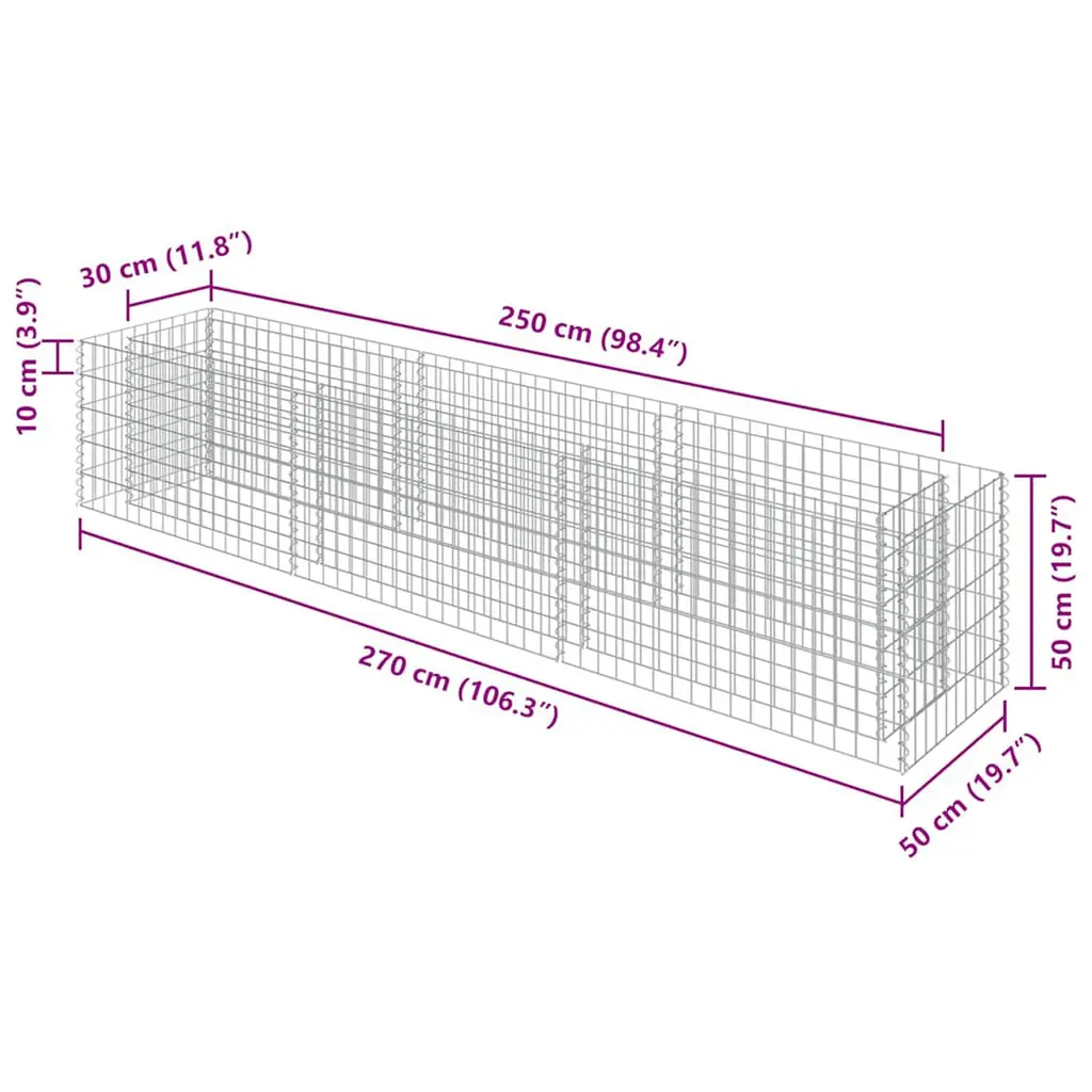 This Gabion Raised Bed is a great option for garden lovers and landscape designers, adding a modern touch to outdoor spaces. With its strong galvanized steel design, you get both practical use and aesthetic appeal, perfect for creating stylish plant borders or raised areas for gardening. Durable Design: Made from high-quality galvanized steel, this raised bed can take on the elements while keeping its structure and good looks over time. It's made for outdoor use, and its simple style fits right in with any garden layout. Rustproof Material: Focused on durability, the galvanized steel is rustproof, so your raised bed looks great all year, with no dip in performance. Plus, the UV resistance stops it from fading and deteriorating. Versatility: Perfect for loads of gardening uses, this gabion helps you create lovely plant borders, jazz up your landscaping, or even fill it with stones for a more structured look. It's great for any gardening scale. Large Capacity: This raised bed has a big volume, holding up to 369 gallons of stones or soil, making it a fantastic option for those who prefer to fill large spaces or create intricate designs. Indoor/Outdoor Use: Made exclusively for outdoor use, this gabion raised bed is both a practical solution and a decorative touch in gardens, parks, or city landscapes.