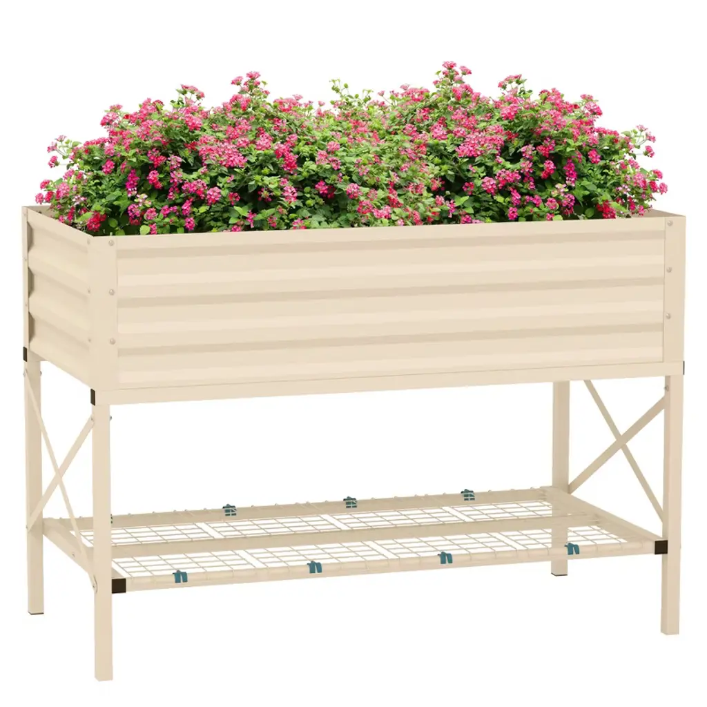 This light brown garden raised bed is a fantastic solution for organizing your plants outside. With its minimalist design and textured imitation wood finish, it not only looks good but also gives you tons of space to store your flowers, veggies, and herbs. It’s essential for both serious gardeners and those just starting out. Ample Storage: The raised bed structure offers tons of space for planting herbs, flowers, and veggies. Great for maximizing your gardening area without skimping on style.Durable Material: Built with UV-resistant polypropylene, this raised bed can withstand the elements, staying intact and ready to use year after year. It's all about keeping your garden looking fab without the need for constant replacements.Stylish Design: The imitation wood texture adds a lovely touch to your outdoor space, fitting in beautifully with your garden's vibe. It not only beautifies the area but also enhances the natural feel.Versatile Use: Perfect for balconies, patios, and yards, this raised bed easily transforms any outdoor spot into a lush garden retreat. It makes your gardening easier and more enjoyable.Easy Access: With a shelf height of 15.4 in, your plants are easy to reach, making gardening tasks like sowing seeds or harvesting produce a breeze.