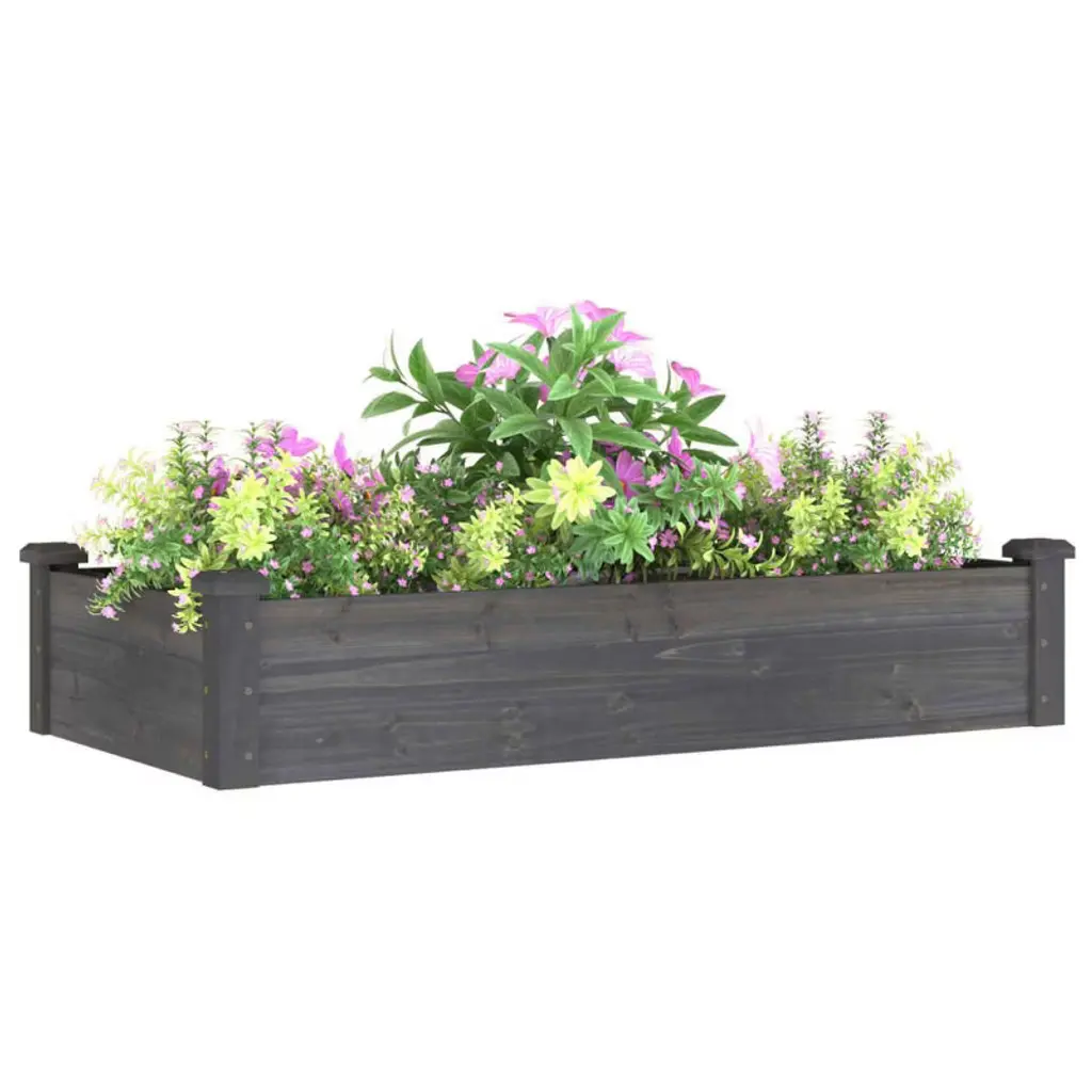 Bring natural charm and practical gardening to your outdoor space with this rustic wooden garden raised bed. Crafted from solid fir wood, this planter is designed to withstand the elements and provide a reliable home for your plants, vegetables, herbs, or flowers. The included non-woven fabric liner promotes healthy root growth and ensures proper drainage, helping to prevent root rot and keep your plants thriving.Key Features• Durable solid fir wood construction for long-lasting outdoor use• Breathable non-woven liner encourages healthy roots and prevents excess water buildup• Rustic, natural wood finish complements any garden or patio décor• Easy assembly requiredSpacious and Versatile• Available in multiple sizes: 47.2" x 17.7" x 9.8", 47.2" x 23.6" x 9.8", 47.2" x 47.2" x 9.8", 94.5" x 17.7" x 9.8", 94.5" x 23.6" x 9.8", and 94.5" x 47.2" x 9.8"• Choose from several color options: Natural, Brown, and Gray• Suitable for gardens, terraces, patios, and balconiesBenefits• Plenty of room for soil and plants, allowing roots to grow deep and strong• Helps organize your garden and keeps plants contained• Adds a decorative touch while providing a practical planting solutionProduct Details• Material: Solid fir wood• Indoor/Outdoor: Outdoor use only• Assembly: Required• Includes: 1 x Garden raised bed• SKU: 364286 (see other SKUs for additional size and color options)Upgrade your gardening experience with this versatile and attractive raised bed, perfect for growing a wide variety of plants in any outdoor setting.
