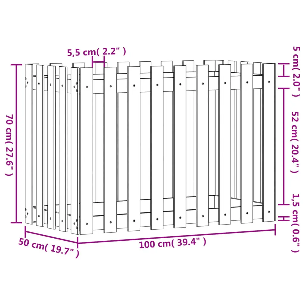 This rustic wooden garden raised bed is a stylish, functional choice for anyone wanting to grow different plants and flowers. With its roomy design, it’s perfect for growing veggies, herbs, or decorative plants, making it an essential part of any outdoor area. The classic white finish adds a touch of charm, ensuring your garden feels welcoming and cozy. Sturdy Construction: Crafted from solid pine wood, this raised bed is tough and weathers well, ensuring it lasts through all sorts of conditions. The solid build promises long-term use while keeping your garden looking good. Ample Growing Space: Measuring 39.4x19.7x27.6 in, this garden raised bed gives you loads of space for planting various plants. Whether you want a veggie garden or a flower patch, this bed can cater to your gardening needs. Stylish Design: With its rustic charm and white finish, it adds character while blending beautifully with your garden decor. The fence design makes it an appealing feature in your outdoor space. Convenient Maintenance: Caring for it is easy; just wipe it with warm water and avoid harsh cleaners. This makes it so you can spend less time on upkeep and more enjoying your flourishing garden. Perfect for Outdoor Use: Made specifically for outdoor spaces, this planter box enhances your gardening experience. Ideal for patios, balconies, or gardens, it transforms your spot into a lush green retreat.