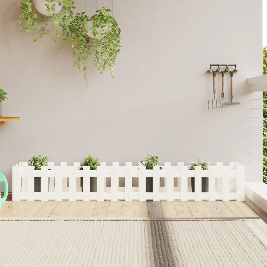 This garden raised bed is a blend of beauty and practicality, making it a fabulous addition to your outdoor area. Made from solid pine wood, this rustic planter box not only lifts your gardening game but also boosts your yard's charm with its decorative fence design. Durable Construction: Made from solid pine wood, this raised bed is strong and reliable. It's built to handle the elements, keeping your plants secure. Charming Aesthetic: The decorative fence gives this garden raised bed a lovely touch, making it a great feature in your outdoor space. It goes well with various landscaping styles. Spacious Planting Area: With dimensions of 78.7 x 11.8 x 11.8 in, this planter has plenty of room for veggies, flowers, or herbs, giving your plants plenty of space to grow. Easy Maintenance: The painted finish looks nice and protects the wood, making it simple to clean with just a dry cloth. Perfect for Any Outdoor Setting: Whether it’s on your balcony, yard, or patio, this raised bed is meant for outdoor use. It's a great choice for gardening fans who want to elevate their planting experience.