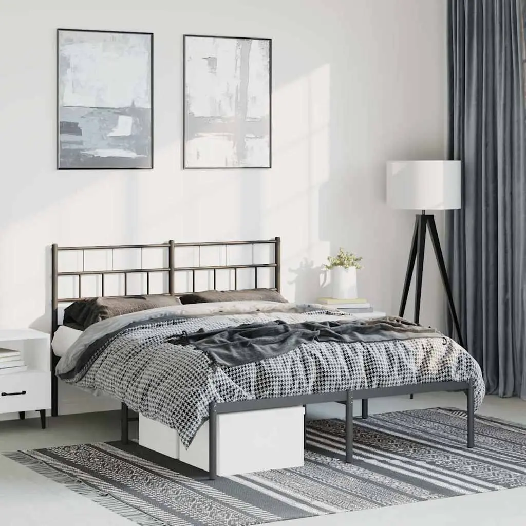 This metal bed frame is made for double mattresses, measuring 53.1 x 74.8 in, and comes with a stylish headboard that looks great in any bedroom. Its solid build and sleek black finish give you both support and style, making it a top choice for adults and guest rooms alike. Sturdy Build: Made with high-quality powder-coated steel, this bed frame gives you a solid base for your mattress, helping you get good sleep for ages.Top Comfort: The well-thought-out headboard gives proper back support, letting you sit comfortably while enjoying your favorite book or just chilling in bed.Loads of Space: With overall dimensions of 77.2 in long, 55.9 in wide, and a headboard height of 35.4 in, this bed frame has enough room for two to sleep easy without feeling squished.Chic Style: The classic look of this bed frame brings elegance to your room, fitting in beautifully with a wide range of interior styles, from traditional to modern.Easy Maintenance: The smooth surface of the metal frame makes it a breeze to clean, and regular checks on screws and bolts keep the bed frame solid over time.