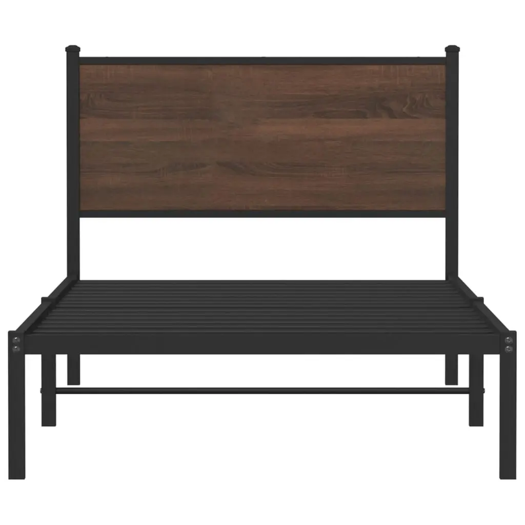 Vidaxl Metal Bed Frame Without Mattress Brown Oak 100 X 74.8 "