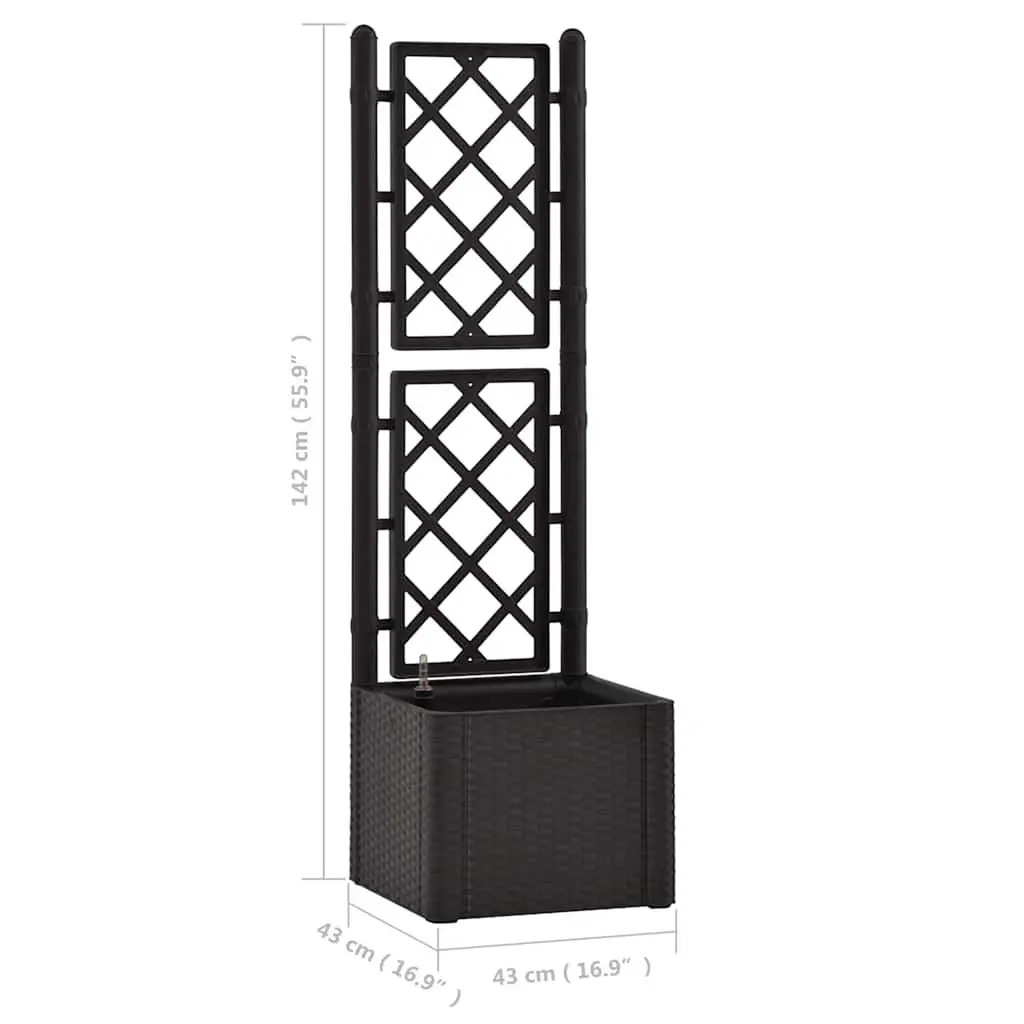 This Garden Raised Bed with Trellis gives your gardening a classy feel while being super practical in stylish anthracite. With dimensions of 16.9 in. by 16.9 in. and a height of 55.9 in., it’s spot on for both indoor and outdoor use, adding a touch of flair while creating an awesome environment for climbing plants. The self-watering system makes sure your plants get just the right amount of water without you having to fuss over them.This planter's tough UV-resistant materials keep it durable and looking good, even after being out in the sun, making it long-lasting through all seasons.The textured finish not only looks good but feels nice too, adding something special to any garden design.Perfect for growing climbing plants like tomatoes and beans, the trellis feature helps them grow up, making the most of your gardening space.Made for both indoors and outdoors, this stylish planter can brighten up balconies, patios, or simple garden areas, making it a great choice for gardeners of all levels.