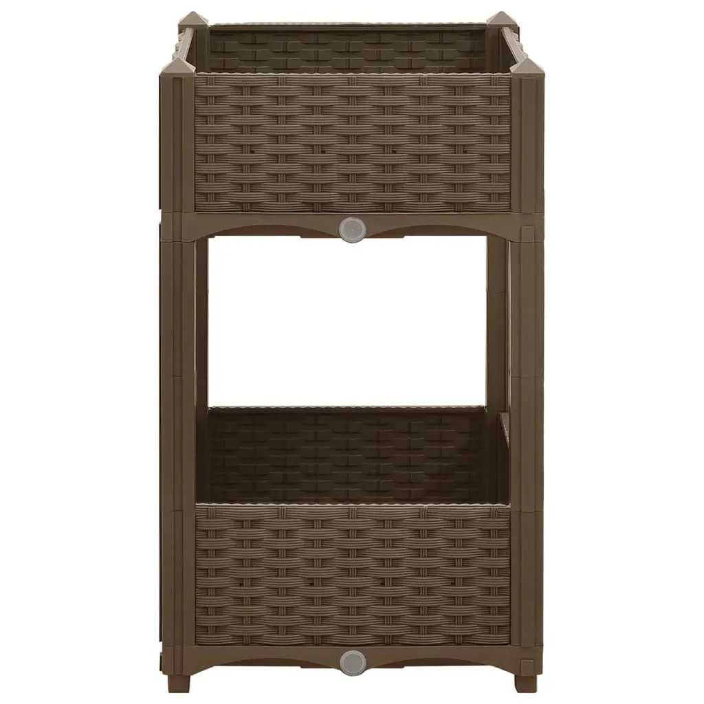 This Contemporary Brown Raised Planter is perfect for jazzing up your garden or balcony, featuring a stylish and practical design that lets your plants and flowers thrive. Its textured brown finish and robust build create a stunning look that suits outdoor spaces beautifully while providing plenty of storage to grow your favorite greenery. Ample Storage: The two big shelves provide lots of room for plants, handling various sizes and types with ease. This generous capacity is fab for anyone looking to create a vibrant garden display on balconies or patios.Durable Design: Made from high-quality polypropylene, this planter is designed to withstand weather, ensuring it lasts and performs well for years. Its UV resistance protects it from fading and wear, making it a savvy choice for outdoor use.Textured Finish: The matte, textured surface not only adds a modern touch but also prevents water pooling, helping your plants stay healthy and vibrant. It gives any garden or outdoor area a focal point.Easy Assembly: Follow the straightforward instructions to set this planter up without a hitch. It’s quick to get ready without needing any fancy tools or help, making it accessible for everyone.Outdoor Use: Specifically made for outdoor use, this planter can spruce up balconies and gardens alike, providing a special place for your plants to thrive. Its lovely design balances form and function in your outside spaces.