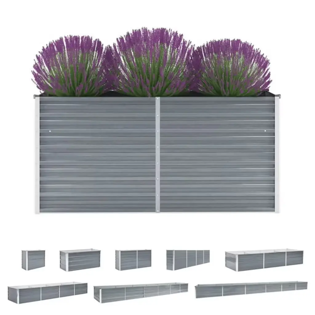Vidaxl Raised Bed Gray Galvanized Steel Large Durable Raised Bed - 189" X 31.5" X 17.7"
