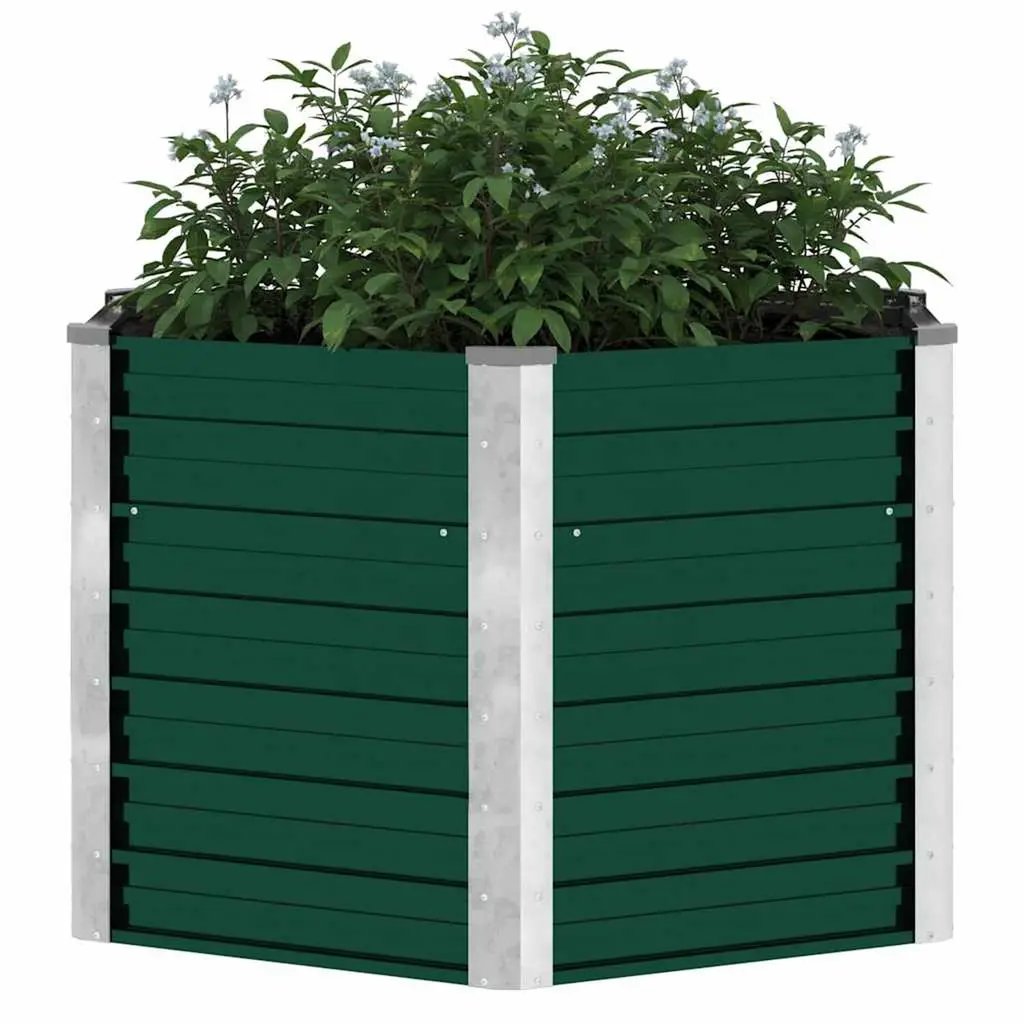 This Hexagonal Garden Raised Bed Planter combines a smart design with sturdy galvanized steel, making it a top choice for anyone wanting to spruce up their outdoor planting area. The charming green shade and weathered finish not only look fabulous but also offer durability against the elements, ensuring your gardening can thrive with both style and strength. Durable Construction: With solid galvanized steel, this planter can handle tough outdoor conditions, ensuring it's a long-lasting solution for your gardening. Weathered Finish: The planter's rustic look adds character to your patio or garden, contrasting beautifully with vibrant blooms or greenery. Spacious Design: At 50.8 in by 50.8 in and 30.3 in tall, this raised bed has heaps of room for planting different veggies, herbs, and flowers, making for a lovely, lively garden. Optimal Planting Area: The hexagonal design maximizes the planting area while making all sides easily accessible, creating a great environment for your plants to thrive. Easy Maintenance: Keeping it clean is easy, just use a damp cloth and avoid any harsh chemicals to keep your planter looking fabulous all year round.