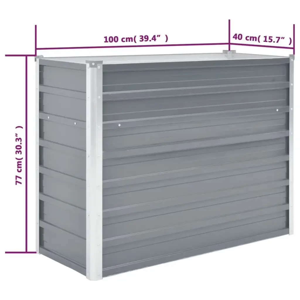 Vidaxl Raised Bed Grey Galvanized Steel 39.4 X 15.7 X 30.3 In - 39.4" X 15.7" X 30.3"