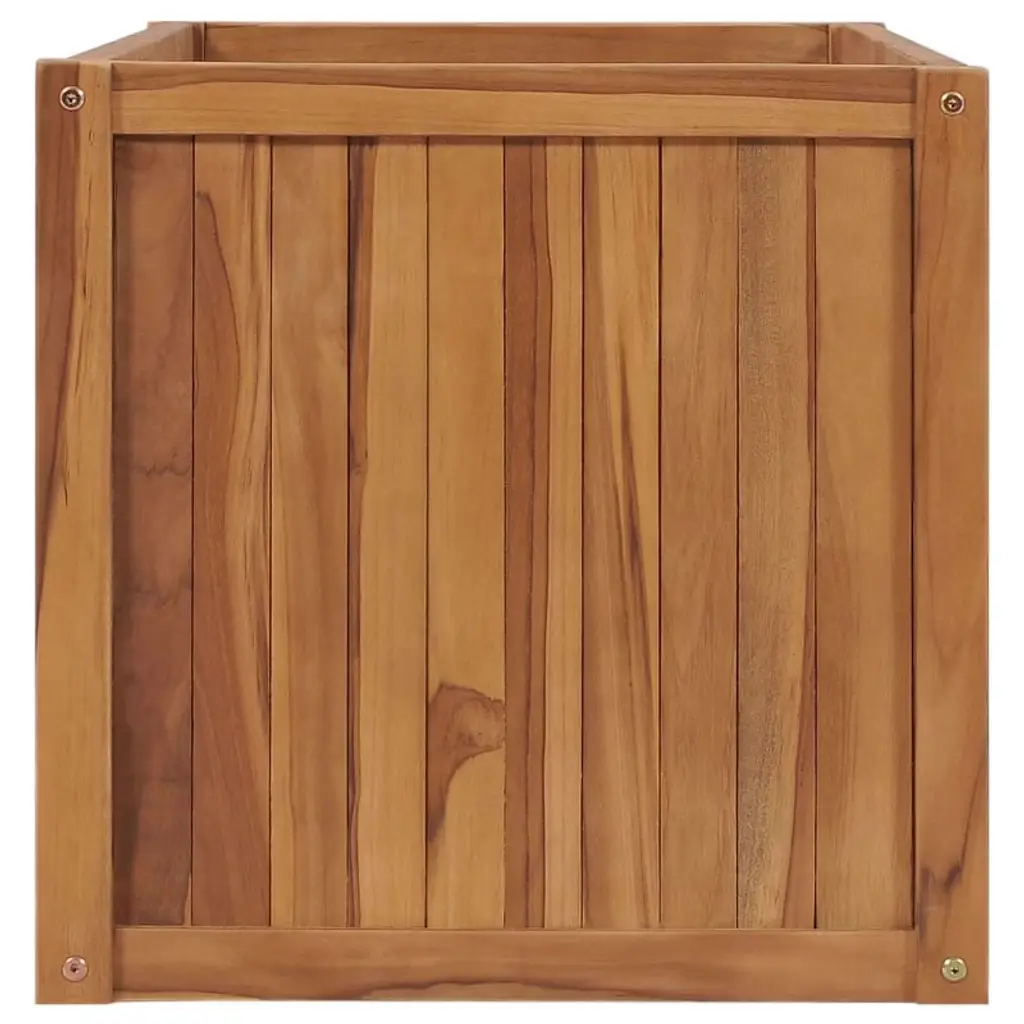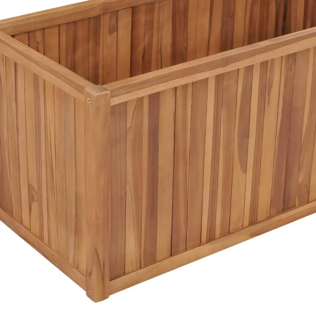 Beautiful and Durable Teak Wood PlanterThis solid teak wood raised bed planter is a stylish and practical solution for plant lovers, perfect for both indoor and outdoor spaces. Its rustic charm and high-quality construction make it a standout addition to gardens, patios, balconies, or terraces. The natural teak wood finish blends seamlessly with any décor, offering a timeless look while providing ample space for your favorite plants and flowers.Key Features• Durable solid teak wood construction for long-lasting use• Fine sanded finish with a natural, rustic appearance• Suitable for both indoor and outdoor use• Easy to maintain—simply wipe with a damp cloth• Assembly requiredSpacious and Versatile Design• Available in multiple sizes to fit your space and planting needs: • 15.7" x 15.7" x 15.7" • 39.4" x 11.8" x 9.8" • 39.4" x 19.7" x 19.7" • 39.4" x 19.7" x 27.6" • 59.1" x 19.7" x 27.6" • 78.7" x 19.7" x 19.7"• Generous planting capacity—ideal for a variety of flowers, herbs, or greenery• Some sizes feature built-in drainage for healthy plant growthPerfect for Any Setting• Enhances gardens, patios, balconies, and terraces• Suitable for creating lush, inviting spaces indoors or outdoors• Natural wood grain and color variations add unique character to each planterProduct Details• Material: Solid teak wood• Color: Brown• Shape: Square or rectangular (depending on size selected)• Weight varies by size (from 10.14 lbs to 53.09 lbs)• Assembly required• SKU: 48965, 48968, 48971, 48972, 48974, 48975This teak wood planter is the perfect blend of style and function, offering a beautiful way to display your plants while withstanding the elements for years to come.