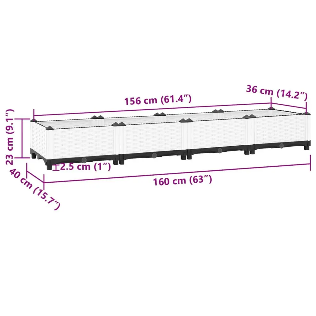 Vidaxl Raised Bed White Polypropylene 64 X 14 X 9 In Durable