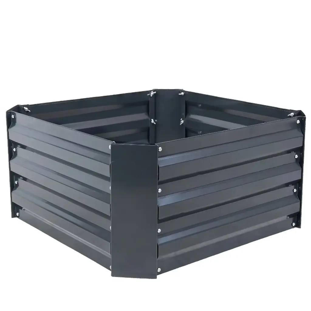 Spacious Planting Area • Deep and wide design holds a large amount of soil, providing ample space for growing vegetables, herbs, flowers, and other plants. • Ideal for creating a productive and organized garden space on your patio, backyard, or balcony. Durable Galvanized Steel Construction • Made from high-quality galvanized steel for excellent durability and resistance to rust and weather. • Sturdy structure ensures long-lasting use outdoors, season after season. Smart, Safe, and Easy Design • Open bottom allows for superior drainage and prevents water buildup, helping roots absorb nutrients and reducing the risk of root rot. • Folded safety edge eliminates sharp corners for safer handling and installation. • Simple assembly process lets you set up your raised garden bed quickly and easily. Product Details • Material: Galvanized steel • Dimensions: 39.4" x 39.4" x 17.7" (L x W x H) • Color options: Anthracite, Brown, Gray, Green Transform your outdoor space with this versatile raised garden bed. Its modern, minimalist look complements any garden or patio décor, while the robust construction ensures your plants have the perfect environment to thrive.
