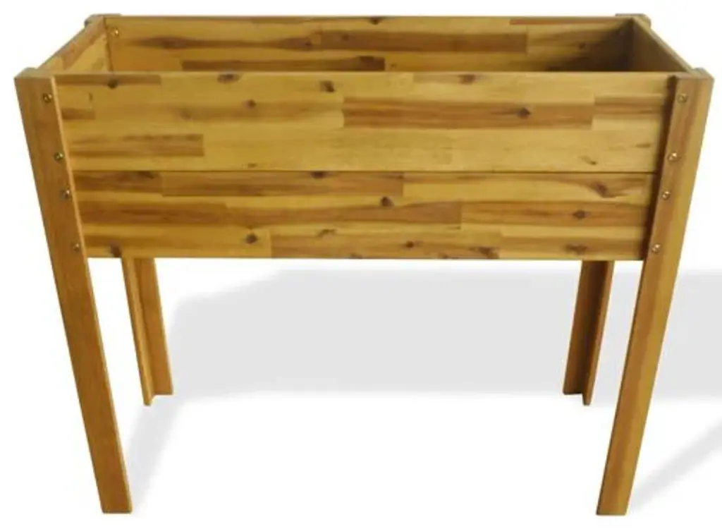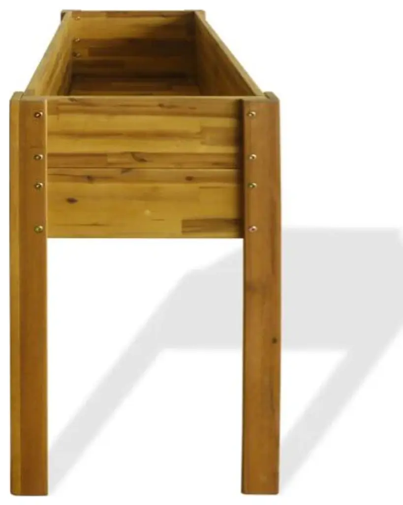 vidaXL Raised Garden Raised Bed Solid Acacia WoodvidaXL Raised Garden Raised Bed Solid Acacia Wood - 43794, This wooden garden raised bed is a perfect choice for DIY gardeners looking to add flowers or plants to their garden. The raised planter is made of solid acacia wood that has been given a light oil finish to bring out its rich, natural color and make the planter weather resistant. The planter has an understated, rustic design and will add a touch of natural charm to your outdoor living space. The planter provides ample space for your flowers and plants. When everything is flourishing, this wooden planter will make an eye-catching addition to your garden or yard. Assembly is easy. Please note that wood is a natural product and may show imperfections.Model No : 43794Brand : vidaXLMaterial: Solid acacia wood with a light oil finishDimensions: 39.4" x 15.7" x 33.1" (L x W x H)Galvanised hardwareEasy assembly