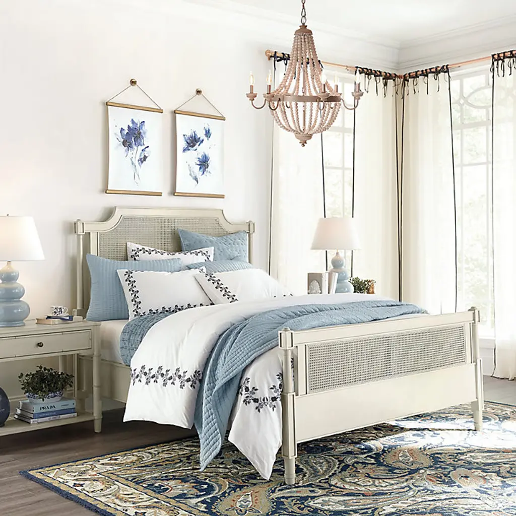 An inviting update on the classic French style, our romantic Villandry Bed is handmade of solid mahogany with airy single caned headboard. Footboard has double caning so the view is just as pretty from in bed. We also designed the footboard to match the height of most mattresses, so extra tall sleepers have room to stretch out. Villandry Cane Bed features: