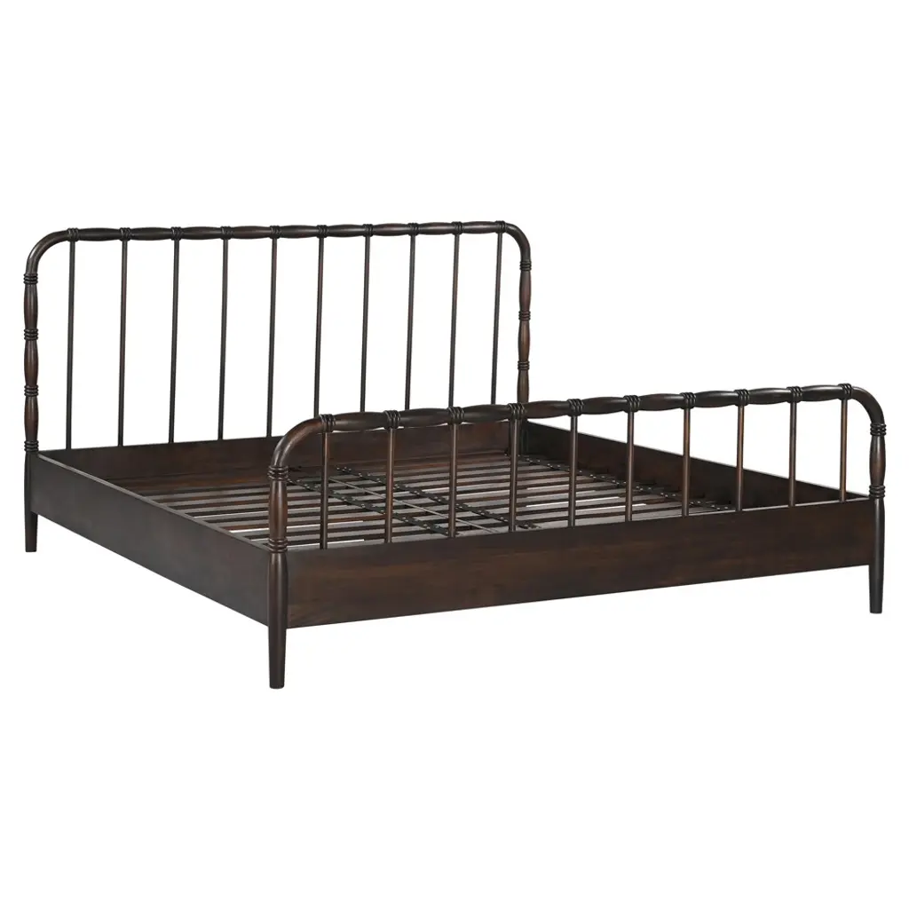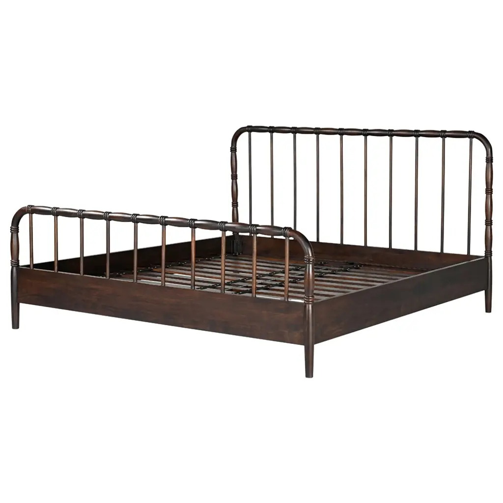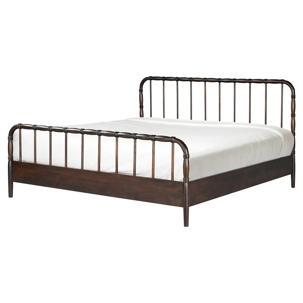 Vindra Updated Traditional Dark Brown Wood Bed - Queen