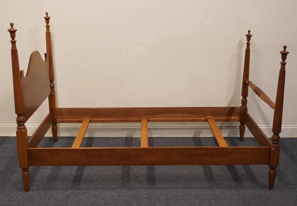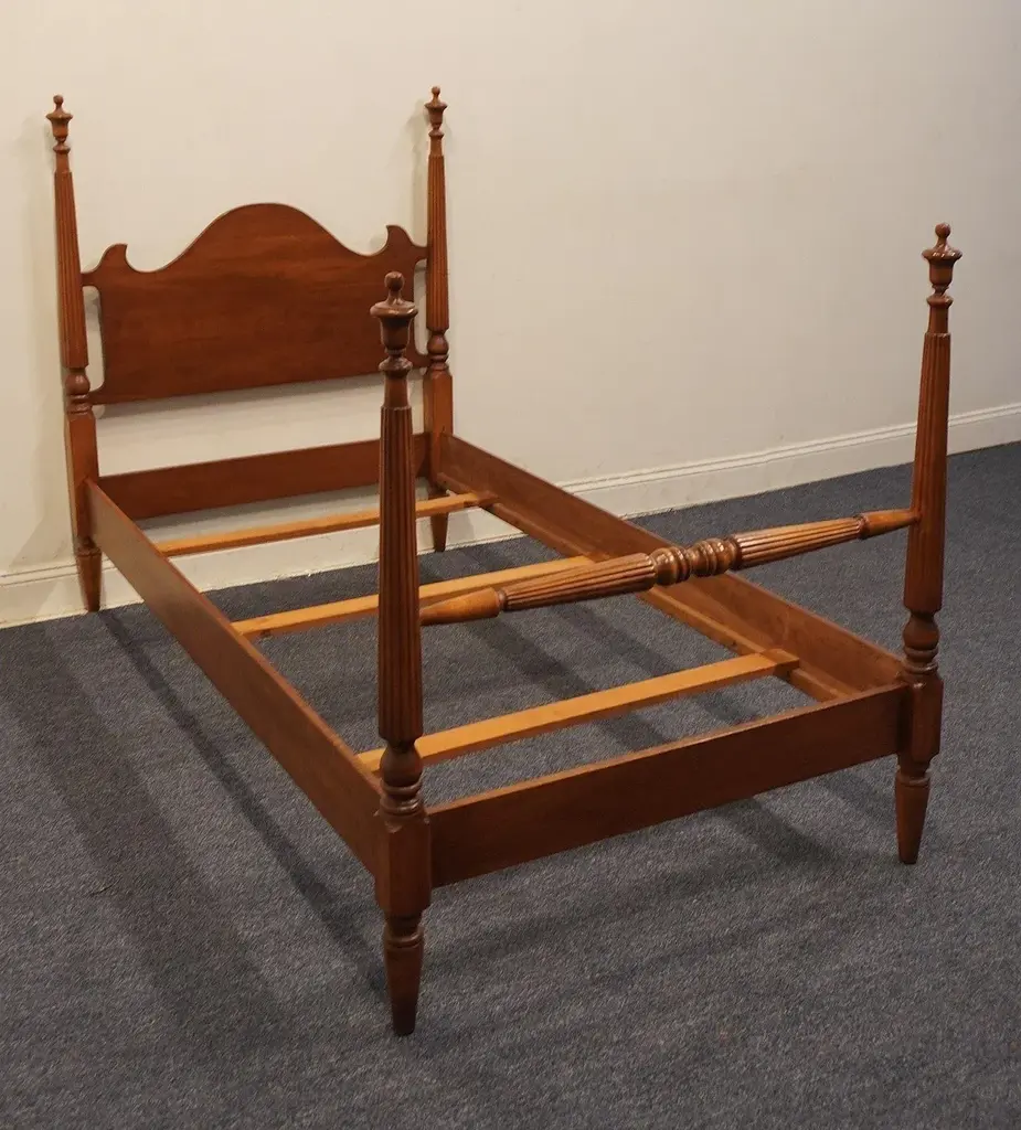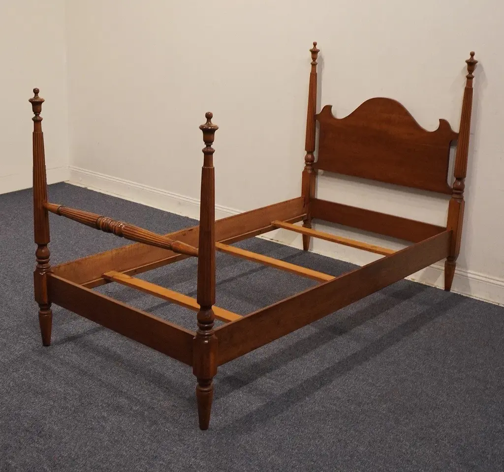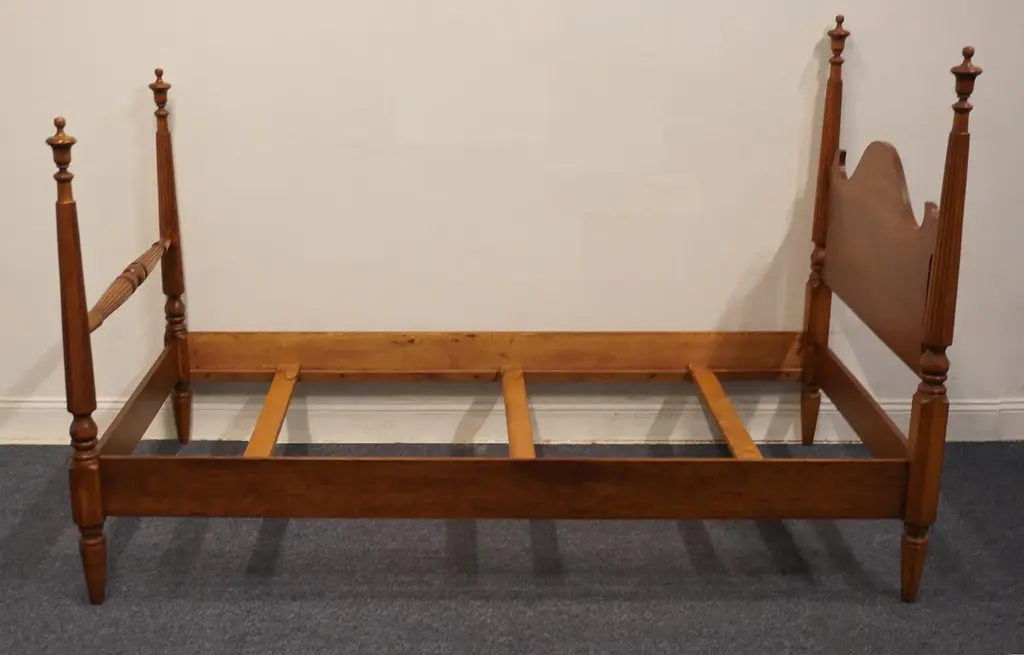 Vintage Antique Solid Mahogany Italian Inspired Traditional Style Four Poster Twin Bed