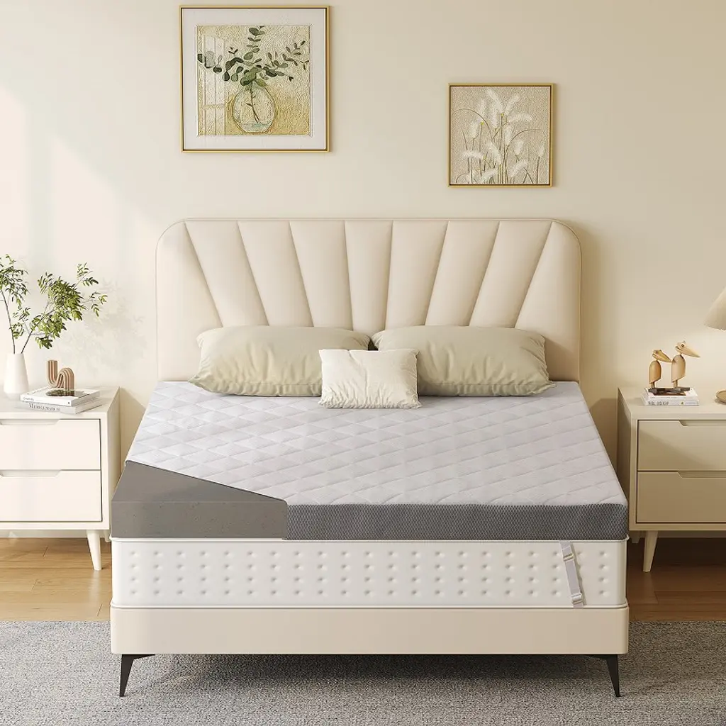 This mattress topper offers extra firm support to relieve back and waist pain by providing proper spinal alignment, ideal for those who need a firmer sleep surface. Made with CertiPUR-US certified foam and Oeko-Tex Standard 100 fabric, it ensures a safe and healthy sleeping environment free from harmful chemicals. The 3-inch high-density bamboo charcoal foam delivers durable support without sagging while naturally absorbing odors for a fresher feel. It features a soft, breathable, and removable cover that’s gentle on the skin and easy to clean. Non-slip beads and adjustable elastic straps keep the topper securely in place, and the zippered design allows for convenient removal and washing.
