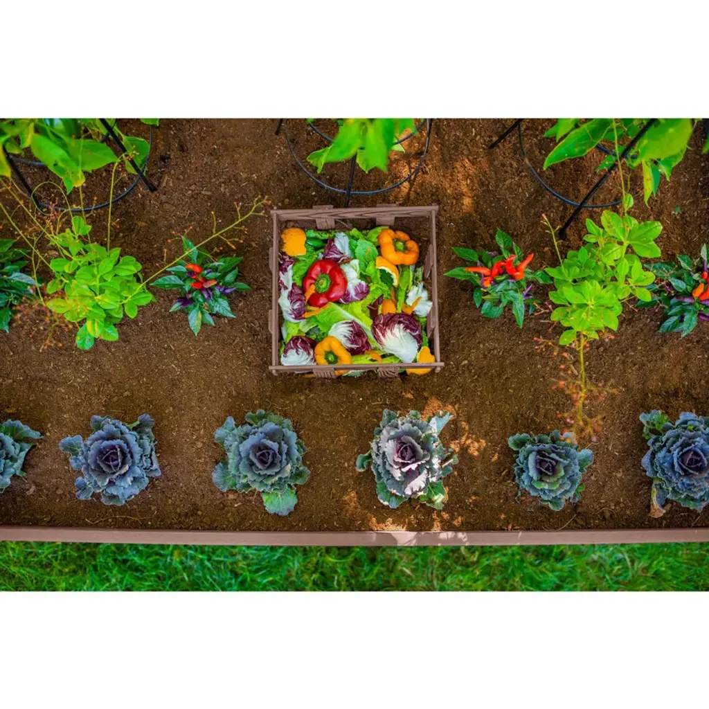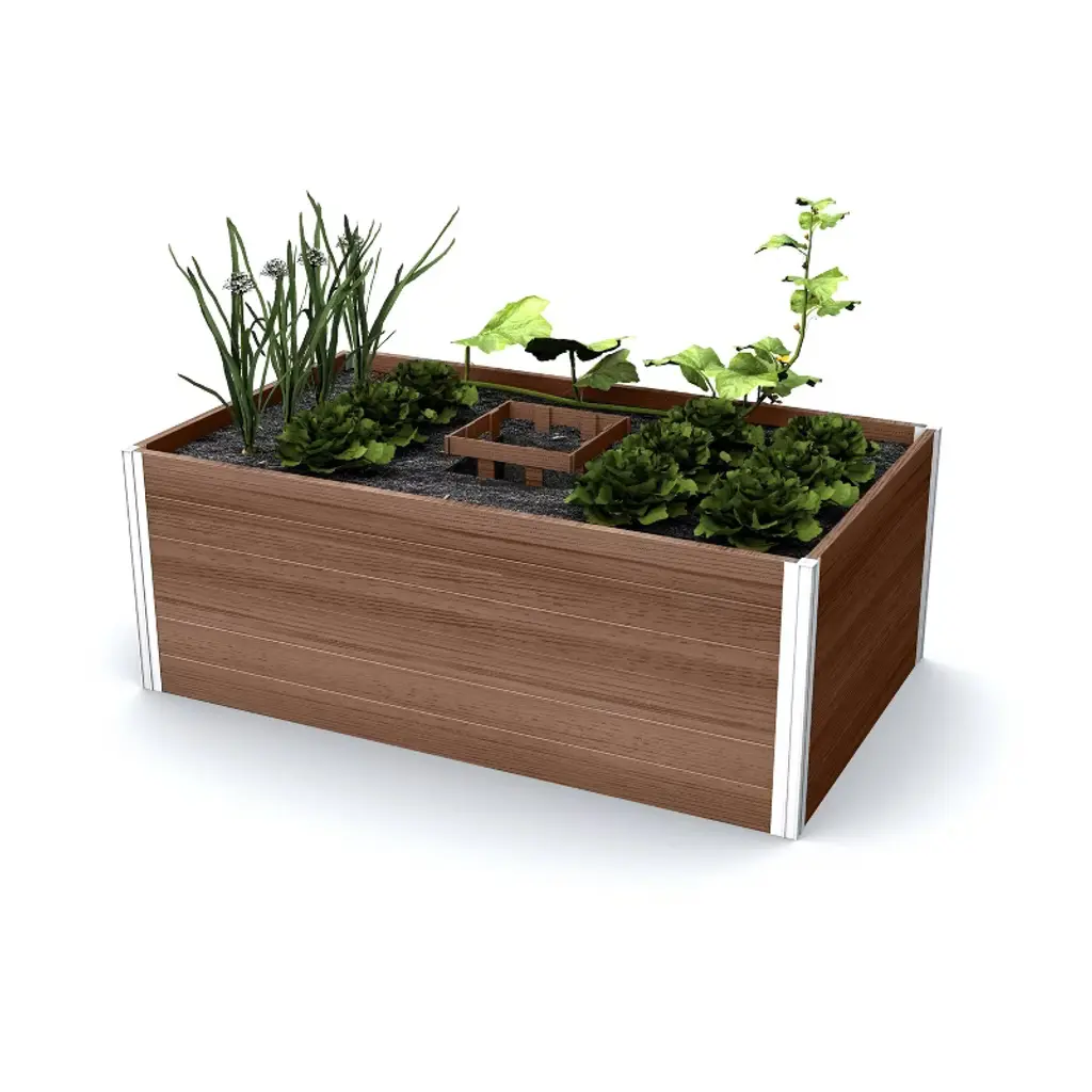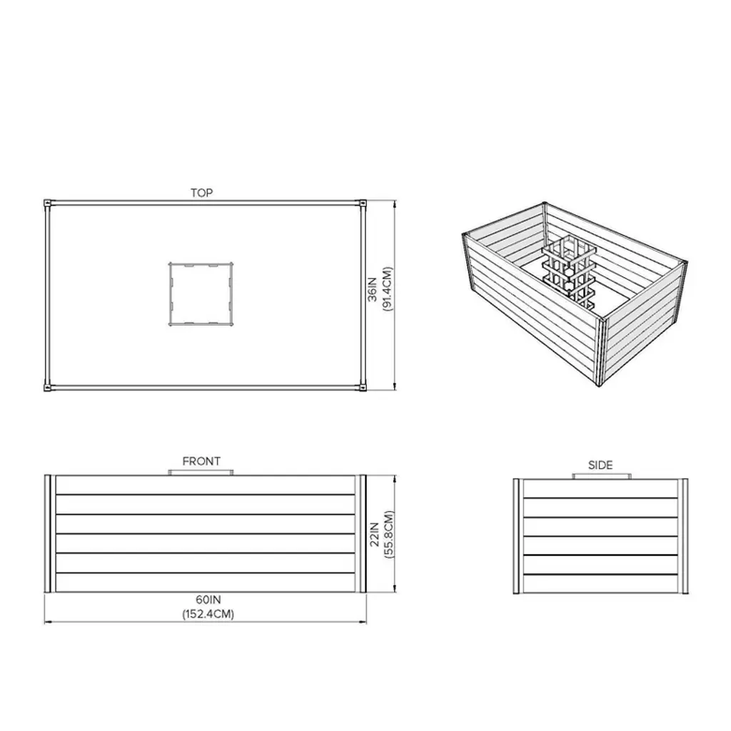 Inspired by the African keyhole gardening technique, the Urbana 3x5 Keyhole Composting Garden lets you compost household waste and grow vegetables in the same garden.A central compost basket is used in the Keyhole Garden to conveniently place your daily kitchen scraps. This household waste is then organically transformed into nutrient rich soil that nourishes your vegetables. Compost fed soil better holds moisture and nutrients, while using up to 70% less water.The Urbana collection is crafted from an embossed PVC material that offers the natural look of wood, but with the lightweight durability of vinyl. Dual aesthetic boards can be reversed to allow for either a natural wood grain look or brushed finish and are BPA/phthalate-free ensuring healthy, safe food production and a long product lifespan.Boards slide into posts easily and conveniently, with no need for tools or screws. Our innovative posts make for perfectly modular garden beds, allowing you to design and configure your own unique layout and sizeIt’s smart, sustainable and beautifully designed. Inspired to Give Back We stumbled upon the Keyhole Garden concept while researching organic gardening methods. This inspired us to create our own series of garden beds using this African gardening technique. This idea was gifted to us by the African people and so we felt compelled to give back. Thrive is a charity determined to end malnutrition in our lifetime. They empower communities with the training and simple tools needed to sustainably grow an abundance of healthy, organic, disease-fighting foods for life. Vita partners with Thrive by financially supporting programs in Africa and around the world. Learn more about Thrive: www.thriveforgood.orgDimensions: 60” L x 36” W x 22”H Compost Basket: 12” L x12” W x 22” H Assembled Weight: 43 lbs Planting Area: 12.7 sq. feet (1.2 sq. m) Soil Capacity: 23 cubic feet (660 liters) Tools Required: NoProduct has no bottom floorApprox. Time Commitment: 1 person, 1 Hour (additional time required for filling garden) Number of Boxes: 110-year limited warranty against manufacturing defects