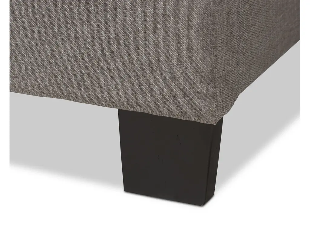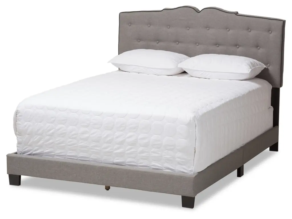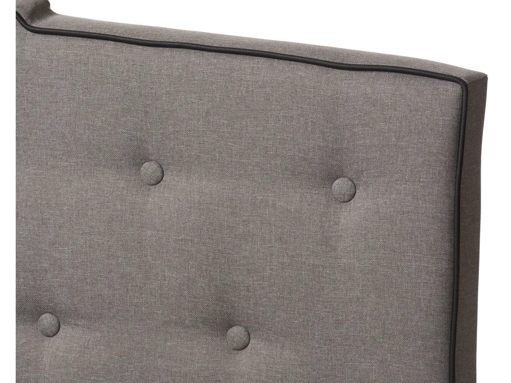 What a fresh twist on style. Between the fancifully scalloped headboard, button tufting and pretty piping in a contrasting neutral tone, this beautifully upholstered bed in gray is a dream come true. Rest easy, it’s also priced to entice.