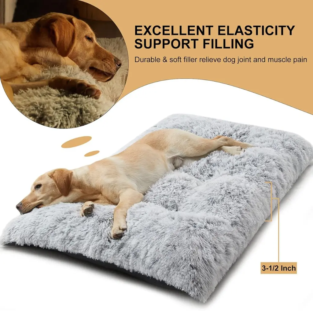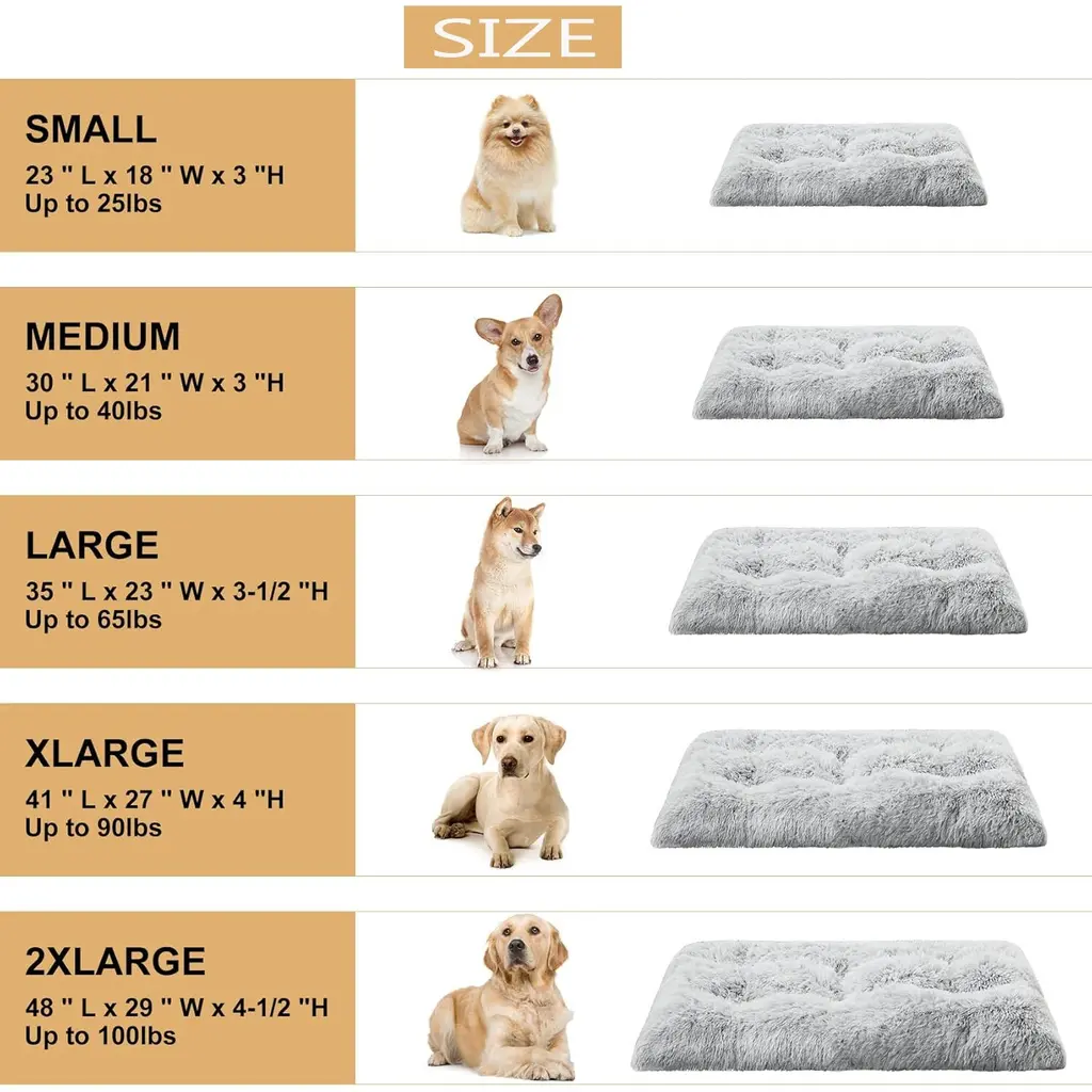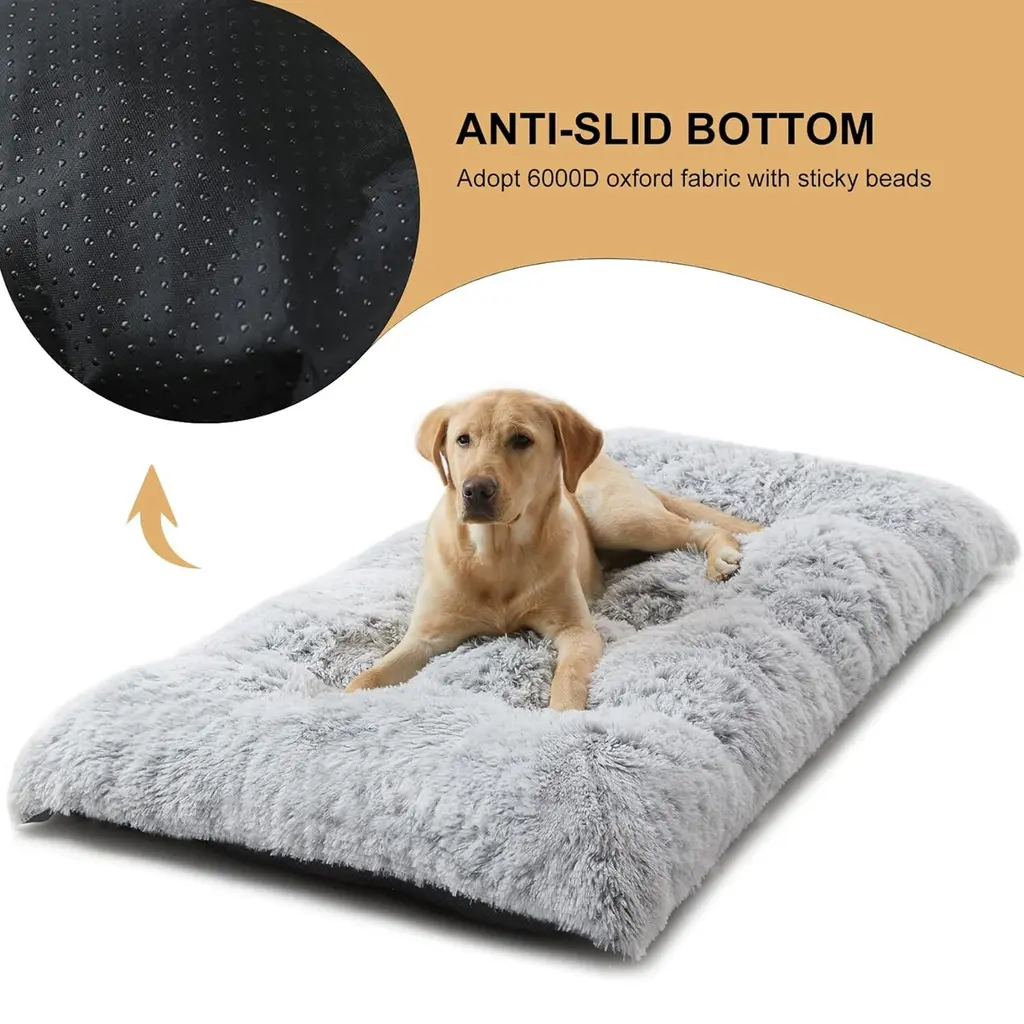Washable Plush Dog Crate Bed Fluffy Cozy Kennel Pad,with Anti-Slip Bottom,grey - L(35x23 Inch) - Grey - L(35x23 Inch)