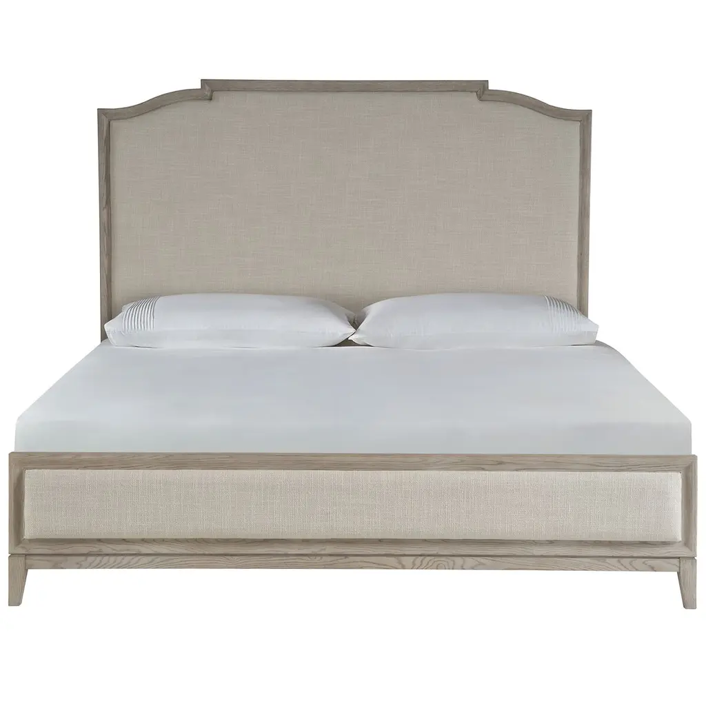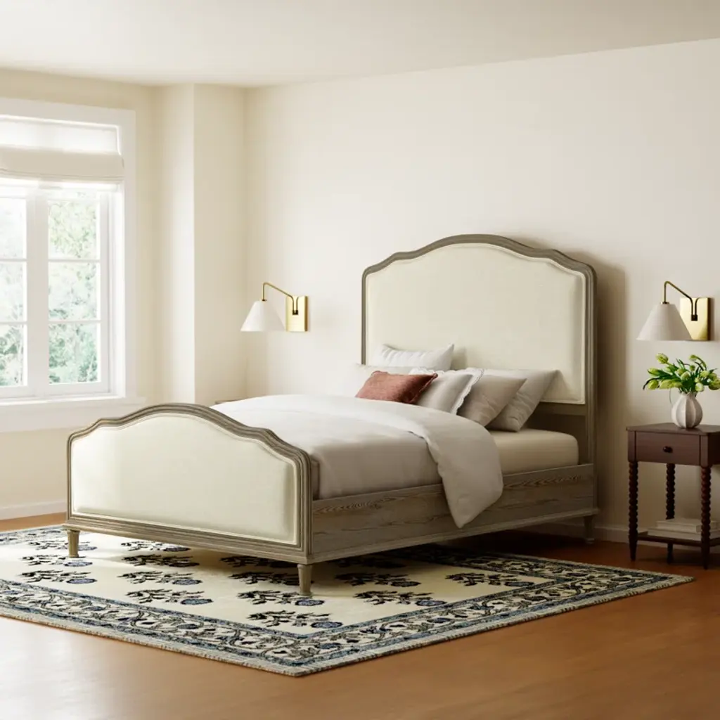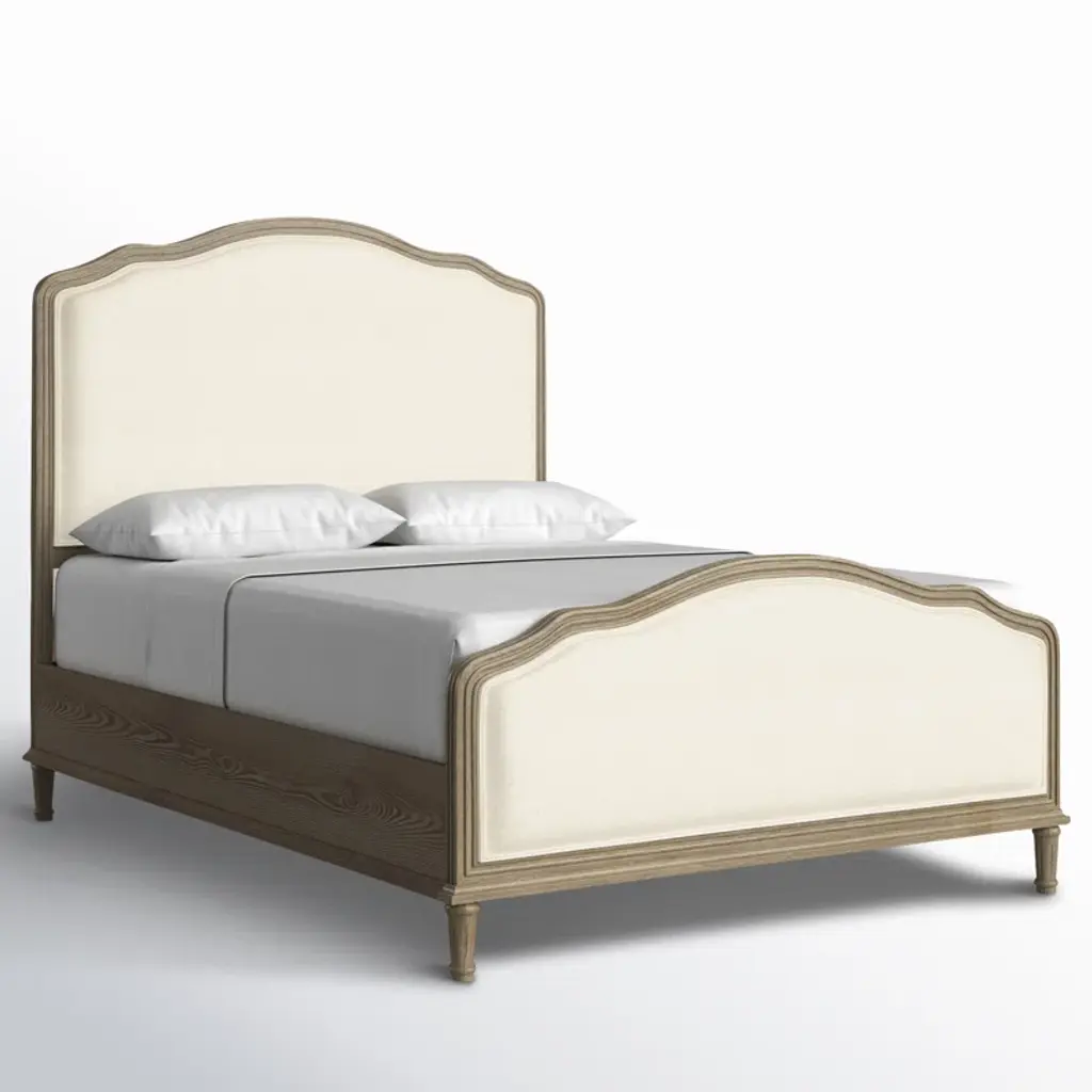Welcome classic farmhouse charm into your sleeping space with our standard bed. It shows off a Portman-style panel headboard, which is lined with cushioned upholstery that supports you in comfort as you catch up on your reading before lights-out. Made from kiln-dried solid wood, it has a lightly weathered finish for a calming vibe. Slats and center legs support your box spring and mattress (both sold separately).