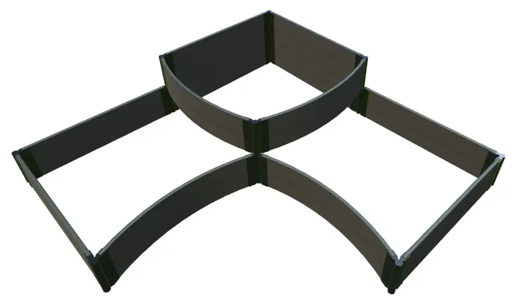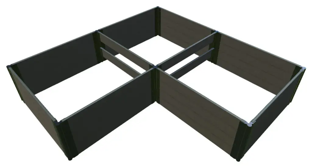 ARROWHEAD 8'' x 8� CORNER RAISED GARDEN BEDS are a triumph of form and functionality with 48 square feet of growing area for flowers, herbs, veggies, fruits, heathers or lavender. Stunning as a flower garden and incredibly functional as a veggie garden you can plant annuals and perennials with vegetables. These raised beds feature dynamic angles and offer depth to plant potatoes or other root vegetables. Cherry tomatoes and ornamental peppers work well with flowers to encourage pollinating insects. Rhubarb, has lovely cream-colored flower stalks that fit in nicely with many plants. Once asparagus has faded, their feathery foliage adds special interest in a flower border. Veggies including artichoke, arugula, asparagus, lettuce, pole beans, beets, carrots and cabbage will all thrive in this raised garden bed, together with luscious tomatoes, fragrant herbs and flowers. For easier harvesting, leave sufficient space on all sides making it super-easy to run out and pick veggies for a salad.Tool-free snap-lock joints make it simple to install. Your kit comes with everything you need other than soil and plants. Each modular kit includes food safe, straight composite boards and snap-lock stacking brackets. The insulating open-channel boards trap air, providing insulation to your soil, keeping soil warmer in the spring and fall, and cooler in the summer to extend the growing period.