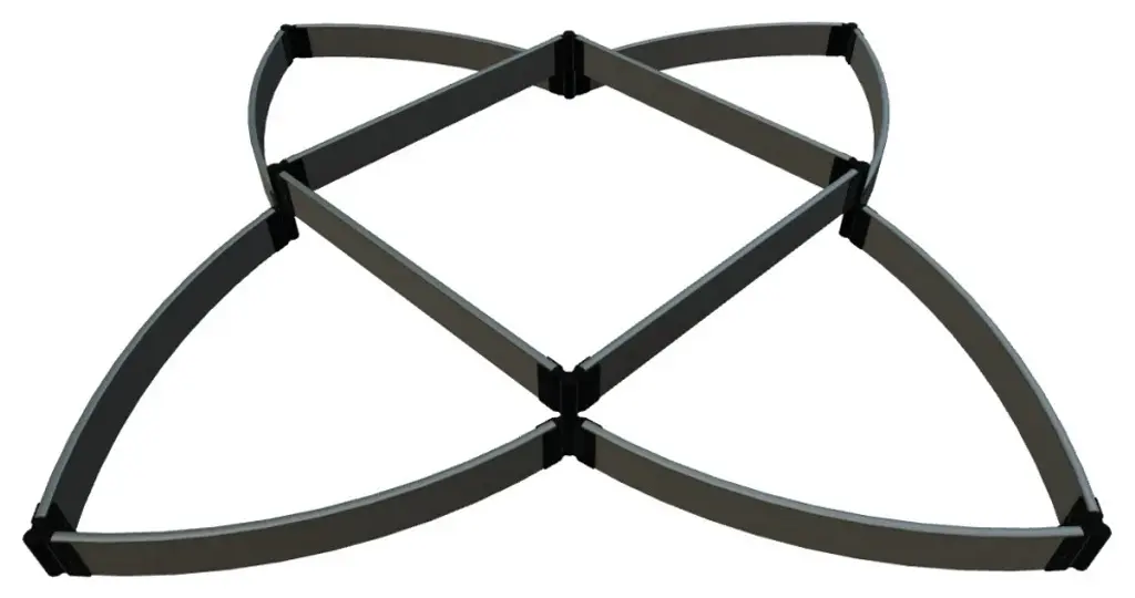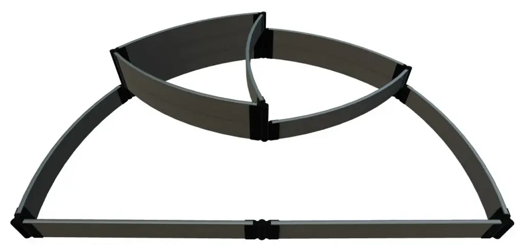 Ahoy Me Hearty�s! -our Semi-Circle �BLACKBEARD�S HAT� Semi-circular Raised Garden Beds are a triumph of form and functionality with two tiers of growing area for flowers, herbs, veggies, fruits, heathers or lavender. It''s easy to assemble this space-saving, yet large raised garden bed with its diamond shape insert to create a beautiful focal point. Stunning as a flower garden and incredibly functional as a veggie garden you can plant annuals and perennials with vegetables. Check out Plant, Friends and Enemies to mix and match your plantings. Veggies including artichoke, arugula, asparagus, lettuce, pole beans, beets, carrots and cabbage will all thrive in this raised garden bed, together with luscious tomatoes, fragrant herbs and flowers. Plant luscious tomatoes, fragrant herbs and flowers in the shallower levels. For easier harvesting, leave sufficient space on all sides making it super-easy to run out and pick veggies for a salad.Tool-free snap-lock joints make it simple to install. Your kit comes with everything you need other than soil and plants. Each modular kit includes food safe, straight and curved composite boards and snap-lock stacking brackets. The insulating open-channel boards trap air, providing insulation to your soil, keeping soil warmer in the spring and fall, and cooler in the summer to extend the growing period.Stacking brackets allow you to install the additional layers of your garden just by inserting the stakes into the brackets below. Our patented snap-lock brackets simply slide onto each end of a board and fasten securely with snap-lock buttons. Brackets pivot 270 degrees, allowing endless design options. As your garden needs and expertise grow you can add on to your modular raised bed any time by purchasing additional tool-free kits, boards and snap-lock stacking brackets to stack or extend your garden.