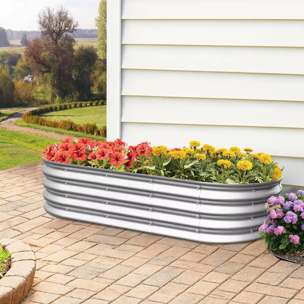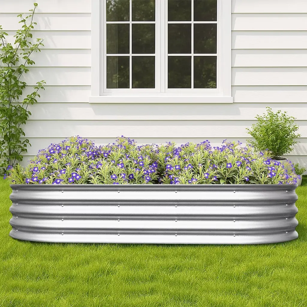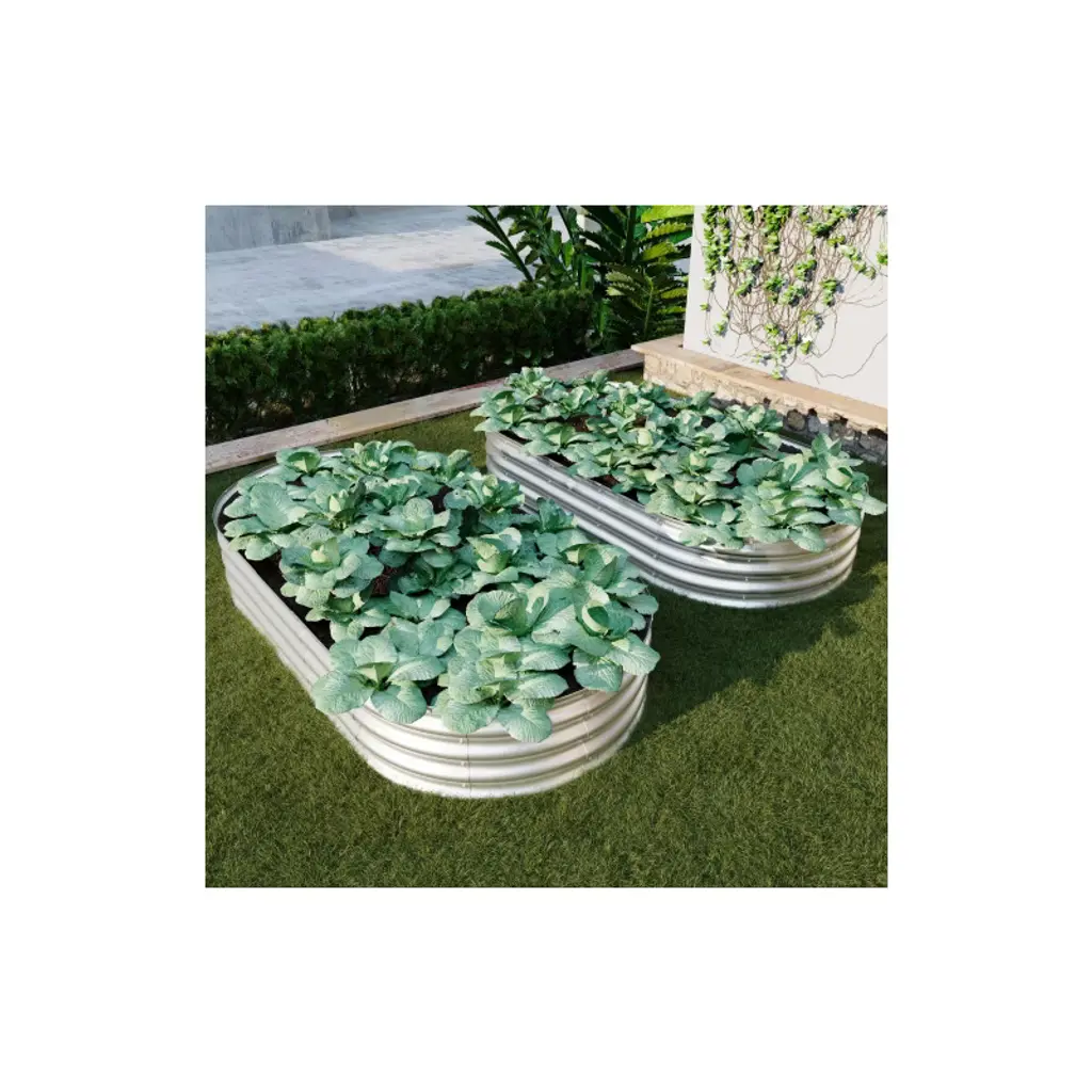 Wellfor 2Pc Metal Outdoor Garden Bed Silver 36"x72"