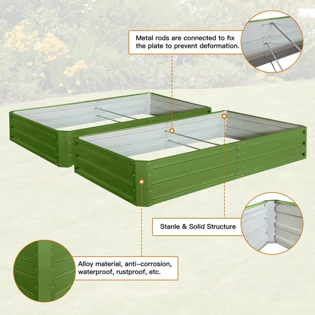 Start growing your dream garden with this 2-pack of 6 x 3 x 1 ft metal raised garden beds. Crafted from thick, rust-resistant metal with a reinforced rectangle structure, these planter boxes provide a durable, spacious environment for vegetables, herbs, flowers, and more. Easy to assemble in just minutes — complete with screws, support rods, and gloves — they’re designed to support healthy root systems and vibrant plant growth year after year. Perfect for patios, backyards, or any outdoor space.