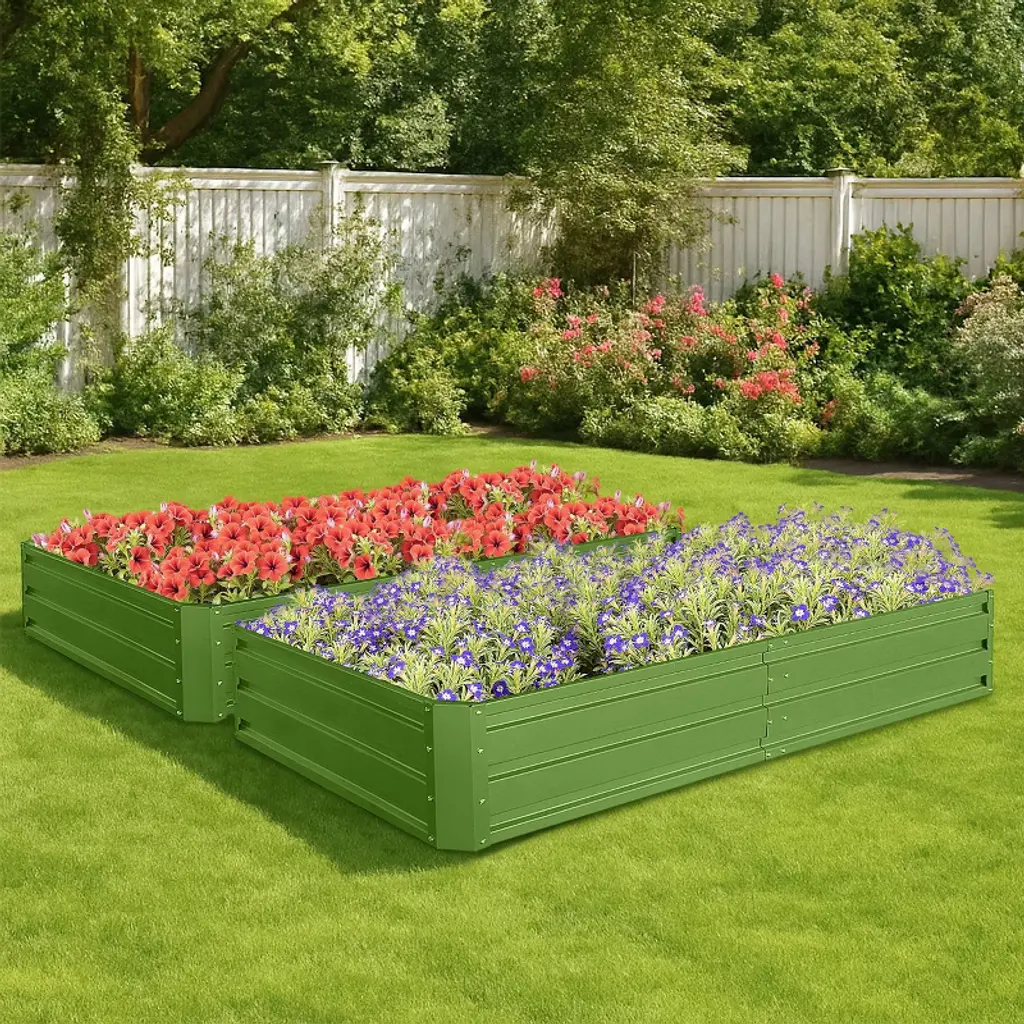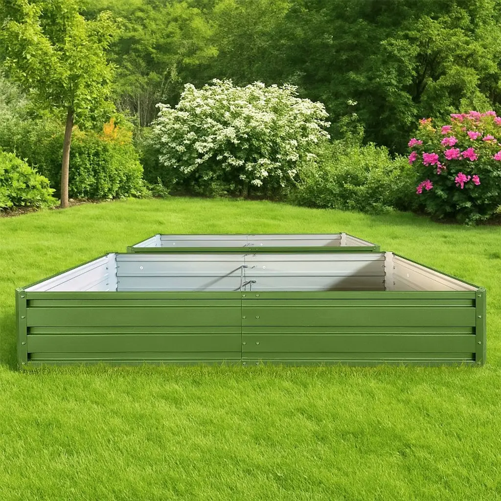 Wellfor 2Pc Rectangular Metal Outdoor Garden Bed Green 35.4"x70.8"