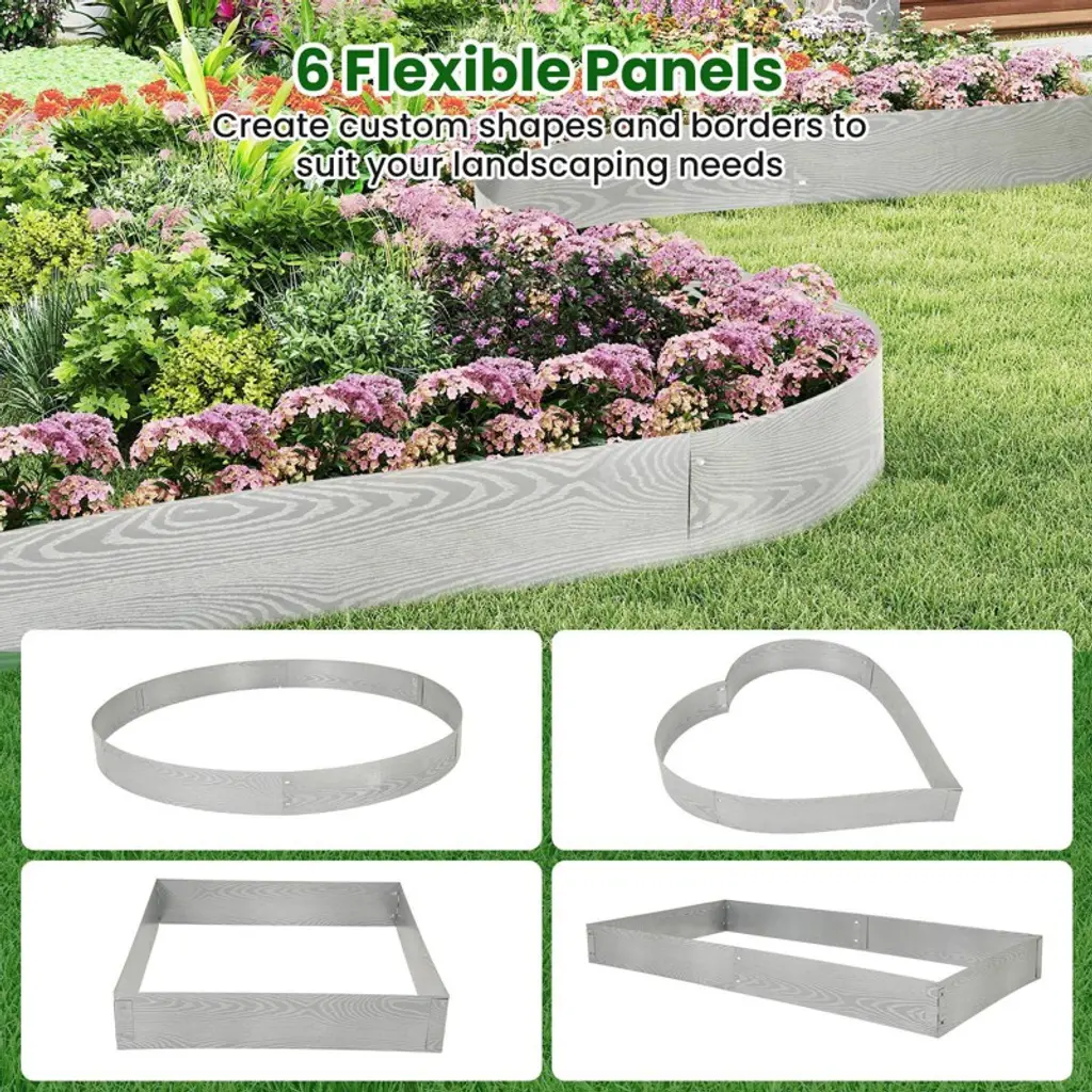 This galvanized metal landscape edging set includes 6 interlocking panels, offering customizable borders to suit various landscaping needs. Made from rustproof, all-weather galvanized metal, it’s durable and resistant to deformation. Ideal for garden beds, yards, sidewalks, and landscape areas, it ensures a neat, well-maintained look while keeping weeds at bay.
