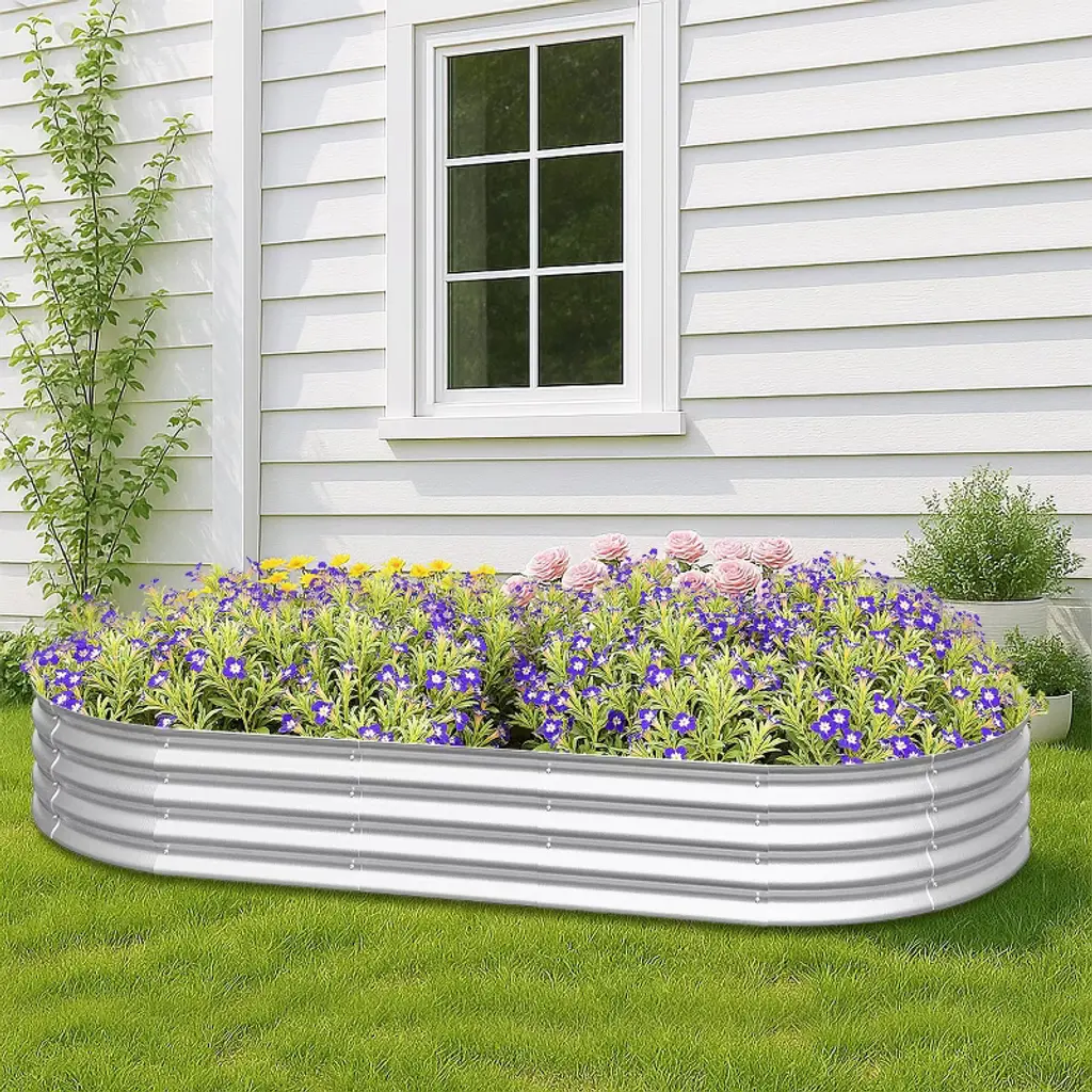 Wellfor Metal Outdoor Garden Bed Silver 48"x96"