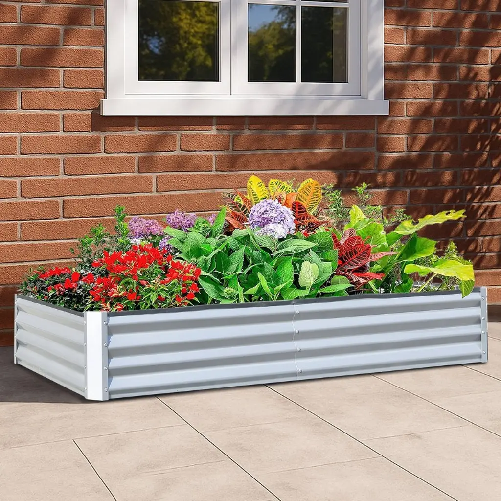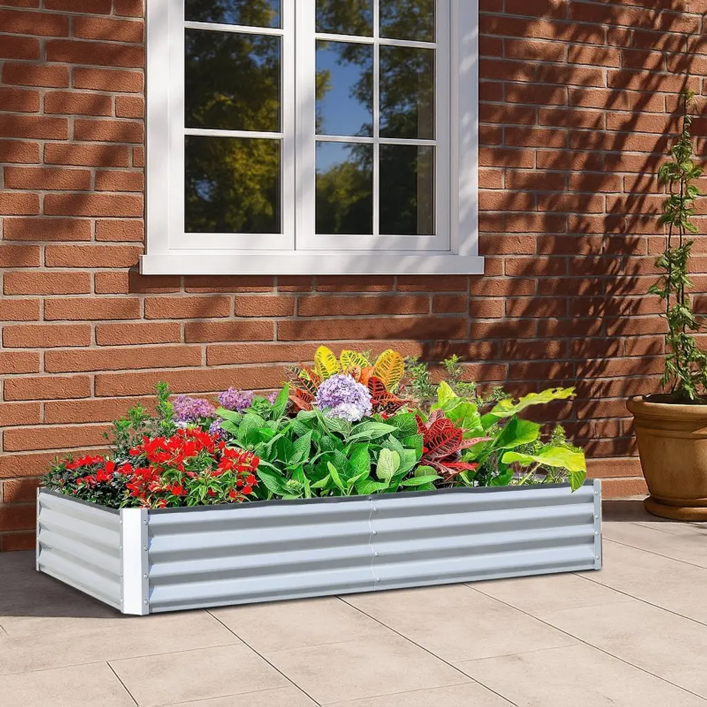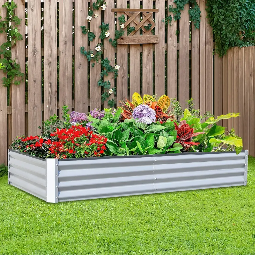 Create the perfect home garden with this 8x4x1 ft galvanized raised garden bed. Crafted from powder-coated galvanized steel, it’s built to resist rust and endure diverse weather conditions season after season. The spacious design provides plenty of room for vegetables, flowers, fruits, and herbs, while the open base encourages excellent drainage and natural root expansion. Reinforced support rods ensure the sides stay secure and straight, and the thickened safety edge helps protect your hands during planting. Simple to assemble and built to last, this raised bed makes growing a healthy, thriving garden easier than ever.