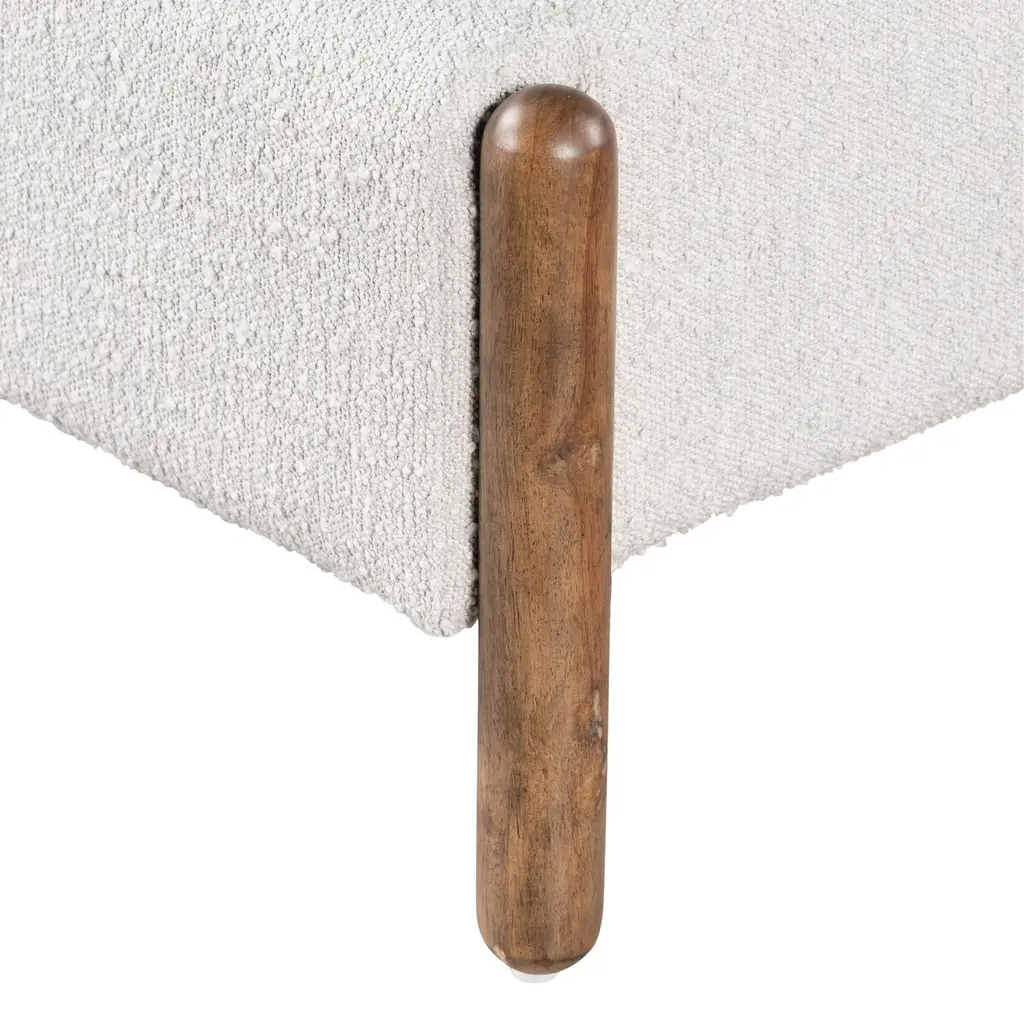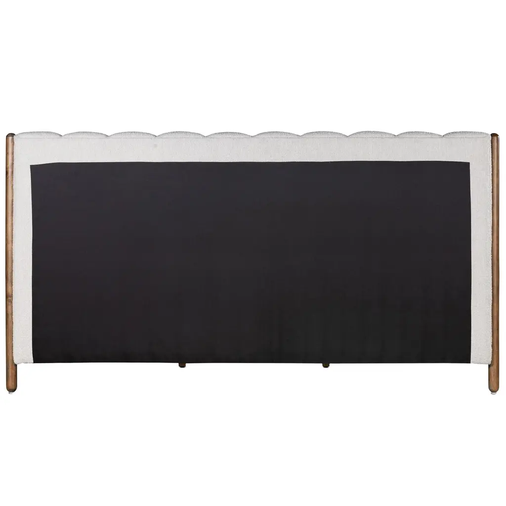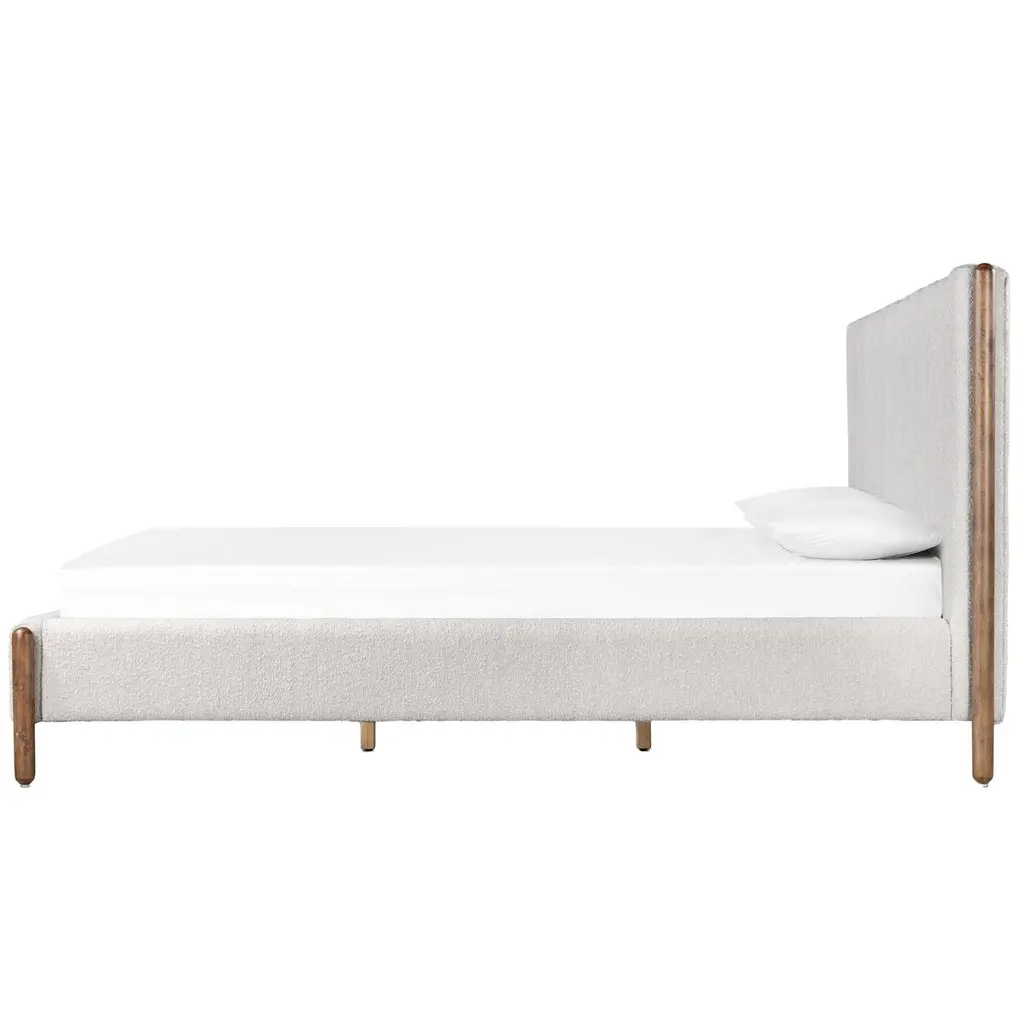 The headboard's vertical channeling gives this bed a luxuriousness that's complemented by the bouclé upholstery. Rounded parawood legs add contemporary ease. Because the bed comes with a slat support system, a box spring is not needed.