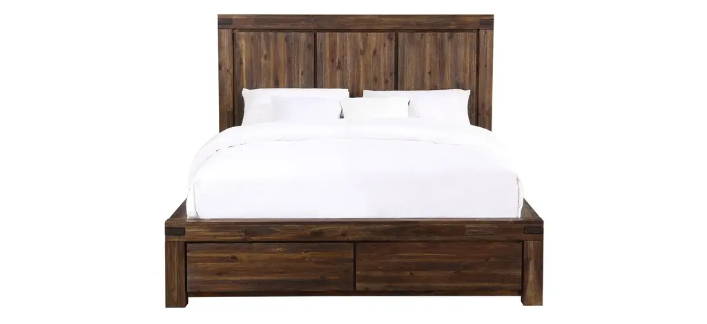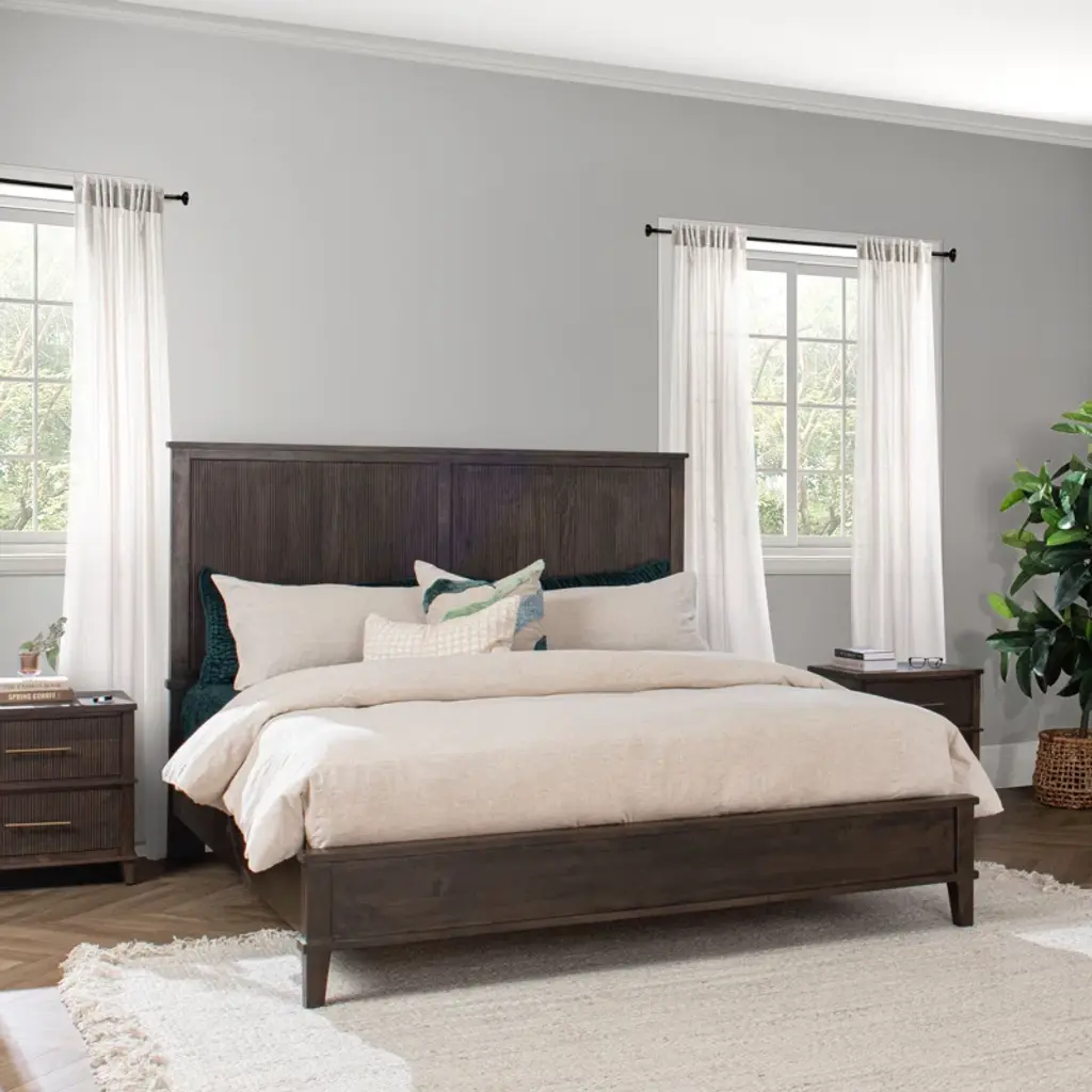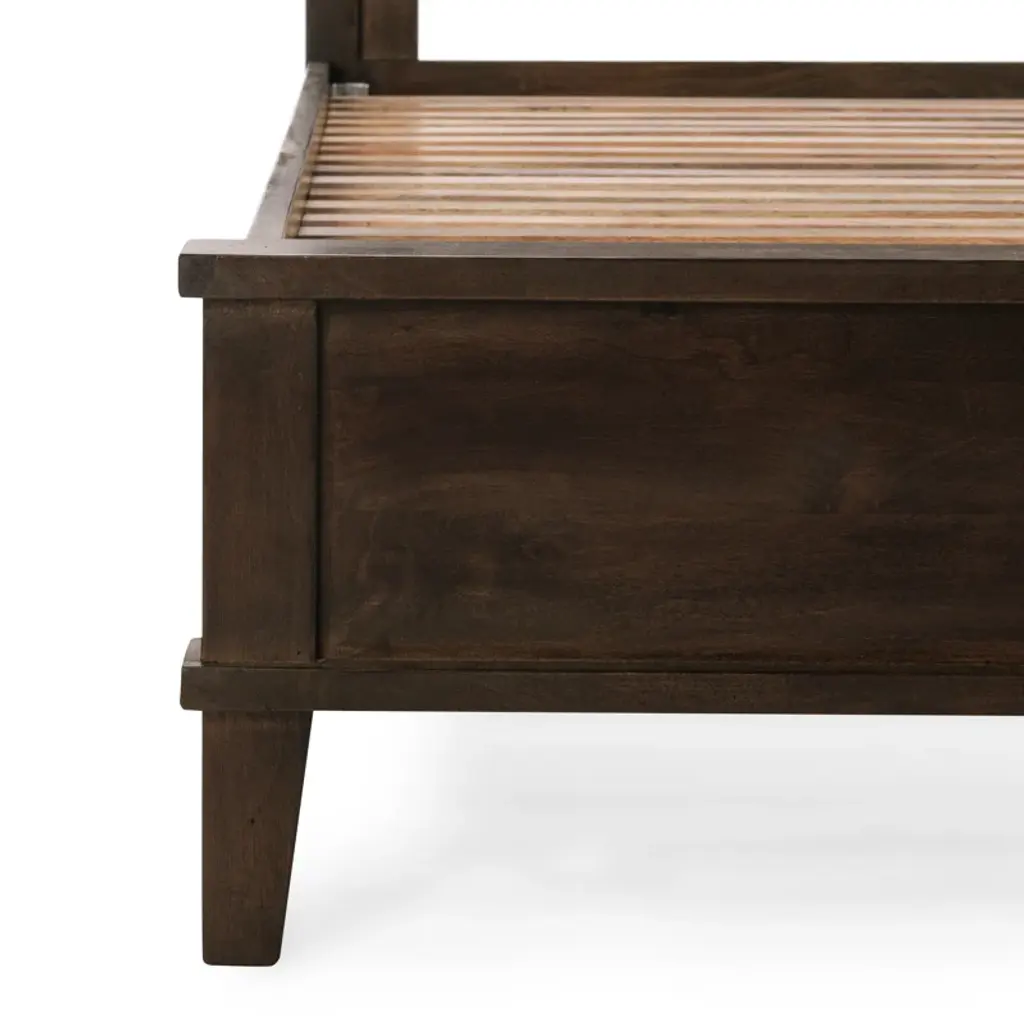Crafted from rich, sustainable mango wood, this platform bed exudes timeless elegance with its expertly beveled trim and ornate cornices. The warm, natural grain enhances its refined design, while the sturdy frame ensures lasting durability. Perfect for both classic and contemporary interiors, this bed blends sophistication with functionality, offering a sturdy yet stylish foundation for restful nights and beautifully complementing any bedroom décor with its intricate detailing.